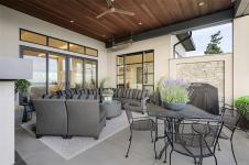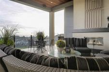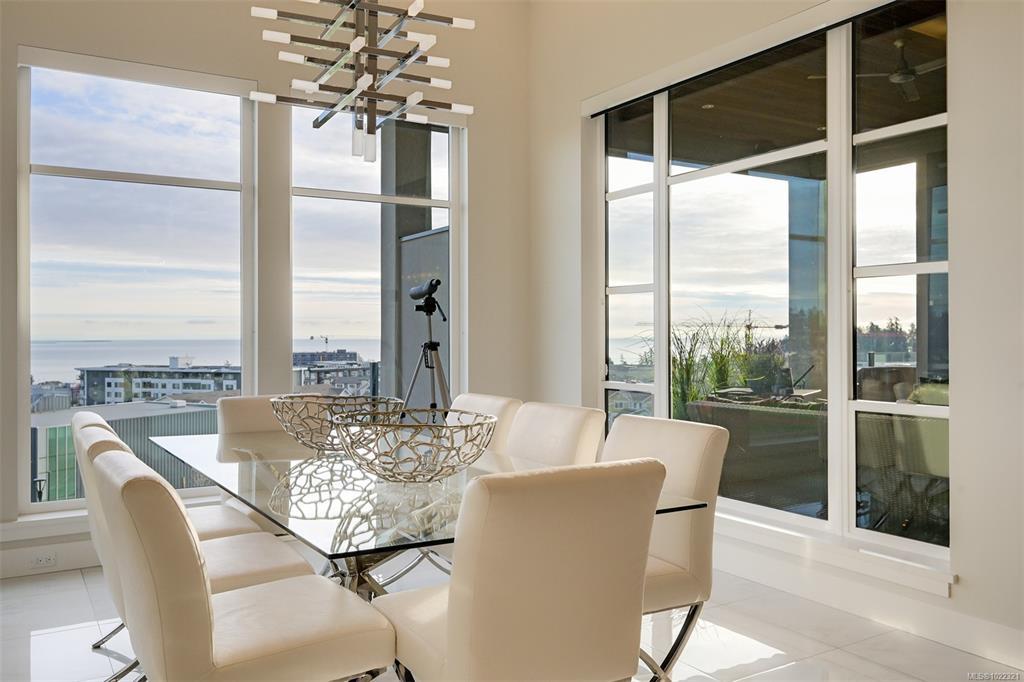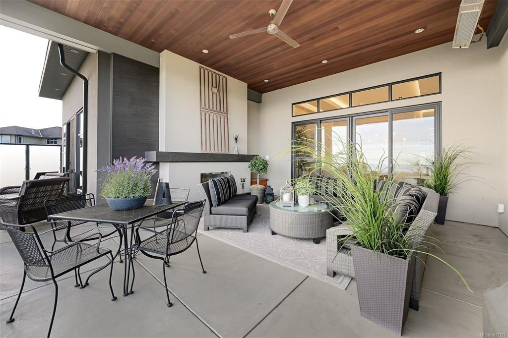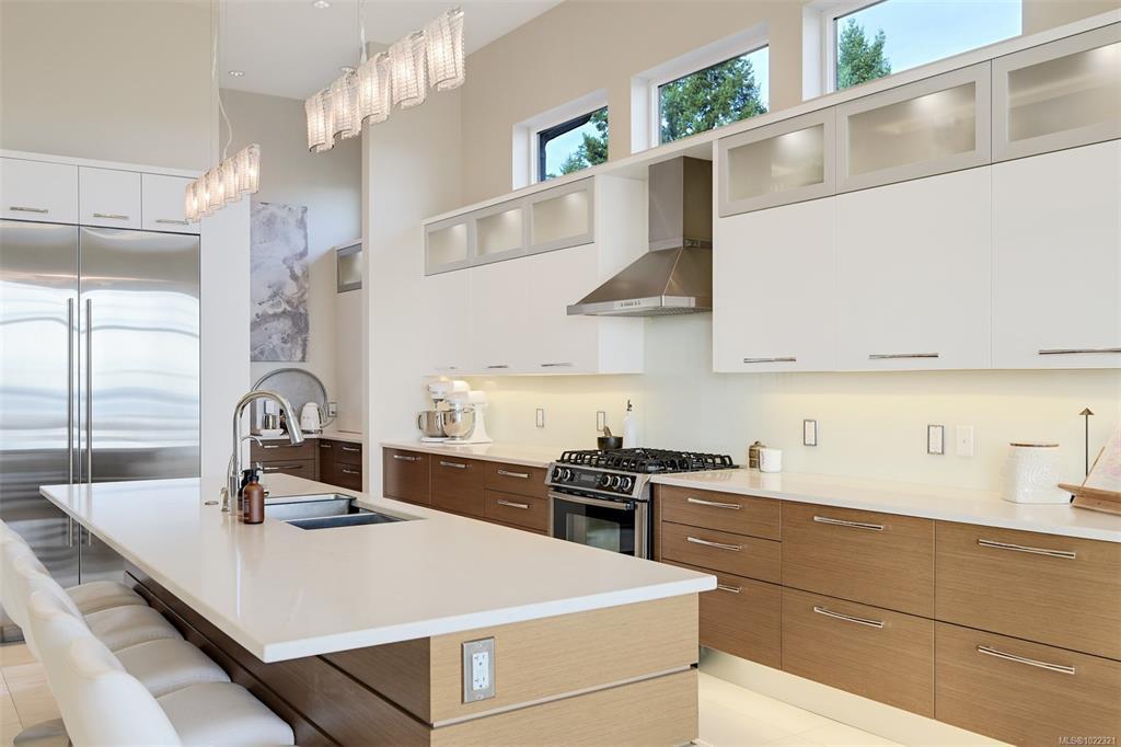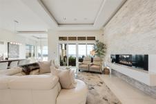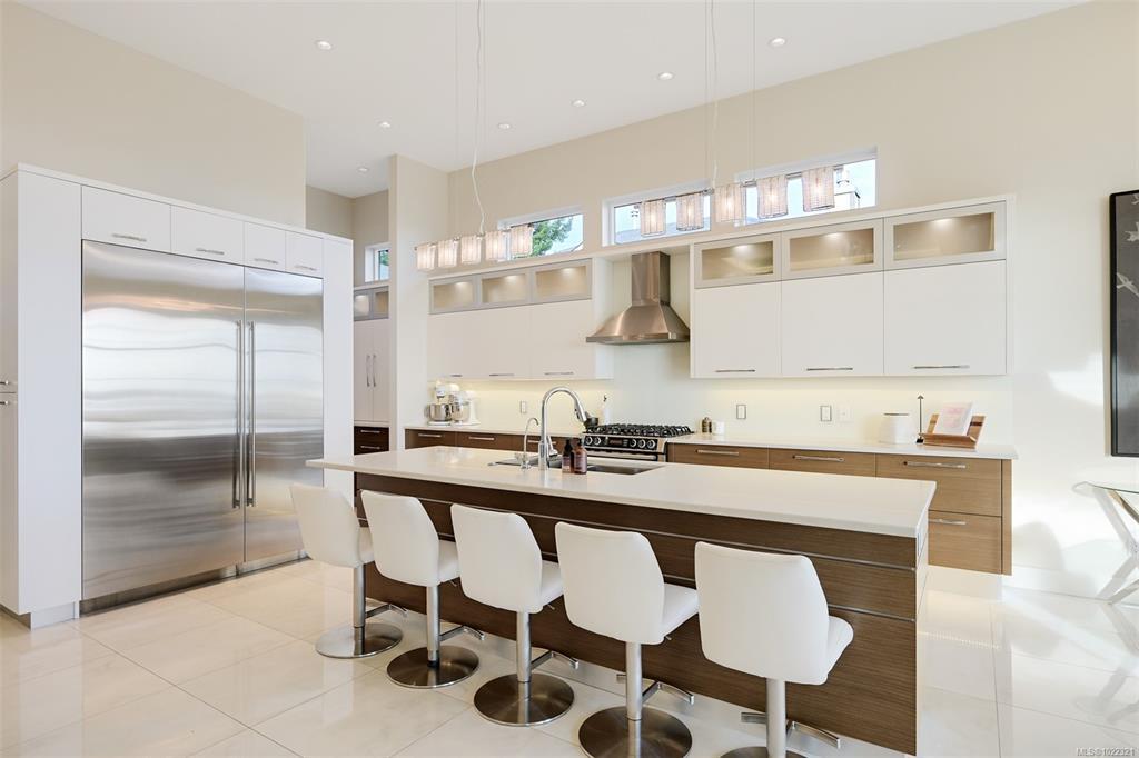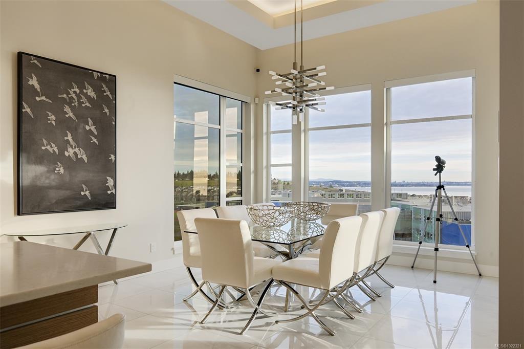 Framed by endless ocean and skyline views, this architecturally refined West Coast residence in Royal Bay offers a rare balance of serenity and sophistication. Mornings begin with radiant sunrise light spilling across marble floors with in-floor heating, while the chef’s kitchen, complete with Sub-Zero refrigeration and a generous pantry, anchors the heart of the home. Expansive living spaces flow to a covered terrace with a gas fireplace and heater, creating a year-round vantage point to watch cruise ships drift across the horizon. The master bedroom evokes a private spa retreat with steam shower and walk-in dressing area, complemented by flexible office and lounge spaces throughout the home. A beautifully designed 1-bedroom suite offers discreet accommodation for extended family or guests. Finished with lush landscaping, built-in sound, security, a double garage, and a standing-seam metal roof, this is coastal living expressed at its most refined.