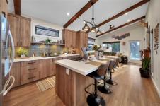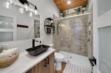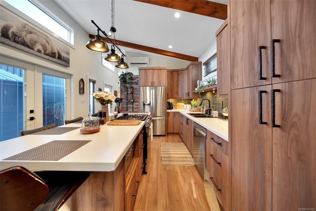 THIS is a rare opportunity to buy a fully furnished vacation home at Great Central Lake, on your own strata lot (no pad fees or leases here!) - pack your bags & bring the boat (*buyer to verify moorage availability with strata)! This gorgeous custom built park model comes fully furnished with built-in storage throughout. The main 1 bedroom home offers luxury throughout with stainless steel appliances, a propane fireplace, vaulted ceilings & high-end design touches. Walk outside to your outdoor living area, hot tub, 2nd washroom & bunk house with full laundry! Walk right from your patio to swim at the beach on the quiet lagoon side of the complex, plus the strata offers a dock for boats, a beach & swimming platforms. Trestle RV park is a sought after family-friendly community with pickleball, pets allowed, a common strata building with laundry (no coins, included in your strata), washrooms & additional strata parking. Proactive strata with healthy contingency. No rental restrictions!