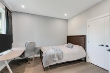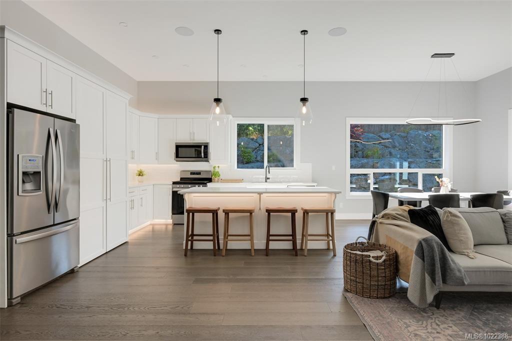 Thoughtfully designed and built in 2022, this impressive 4-bedroom Mill Springs home blends modern style with everyday comfort. The open-concept living space is enhanced by soaring 11-foot ceilings, while the kitchen offers quartz countertops, a large island, and seamless connection to the main living area. The primary bedroom is a true retreat with an oversized walk-in closet, and ensuite featuring heated tile floors and contemporary fixtures. Energy-efficient features include a natural gas furnace, air conditioning, thermal windows, solar panels, and EV charger readiness. Outside, enjoy a sunny, private lot with attractive rock landscaping and direct access to the Mill Springs Trail. Located in a safe, friendly neighbourhood with underground services, ample parking, and an overheight garage, this is a rare opportunity in a highly desirable setting. An ideal fit for those seeking a newer, energy-efficient home with direct trail access in a well-established community.