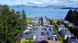 Oceanfront living in a nicely updated 1 bedroom, 1 bathroom ground level condo. Opportunity to own just steps from the beach and enjoy a paddle, sunset stroll or shoreline social. This desirable 1 bed, 1 bath Beachcomber Estates condo offers an open kitchen/living room area with warm wood counters, spacious cabinets, accent lighting and sliding glass patio doors that lead to covered patio to relax with a morning coffee. The 4-pc bath is ideal with a decorative vanity, tile floor and linen storage. Bright bedroom features privacy blinds, double closets, durable and attractive laminate flooring throughout this efficient, comfortable floorplan. Utility/storage room with convenient built in shelving, a nearby storage locker provides plenty of space to live, work and play! Common laundry room nearby. Your west coast lifestyle awaits!