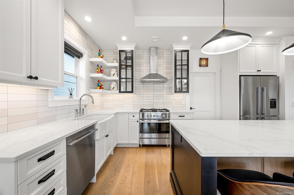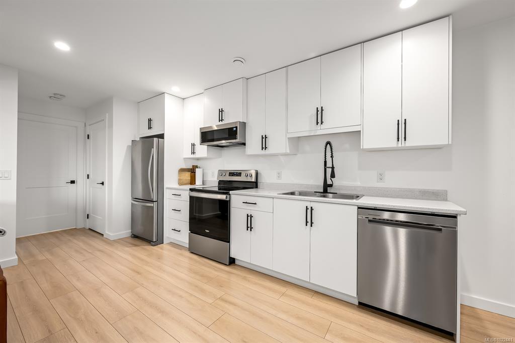Modern living meets family-friendly functionality in this spacious home built in 2022, located in one of Courtenay’s most desirable neighbourhoods. The main level features a bright open-concept layout with soaring 12-ft ceilings, large windows, and a generous deck off the living area—perfect for entertaining. The kitchen connects seamlessly to a large laundry/mudroom that leads to the garage, adding everyday convenience. The primary bedroom offers a 5-piece ensuite and walk-in closet, with two more bedrooms and a 4-piece bath rounding out the main floor. Downstairs you'll find two additional bedrooms, a full bath, and nearly 500 sqft of storage space. Bonus: a self-contained 1-bed, 1-bath suite with in-suite laundry and private covered patio entrance—ideal for guests, family, or rental income. The fully fenced backyard completes the package. This home offers style, space, and flexibility in a fantastic location.