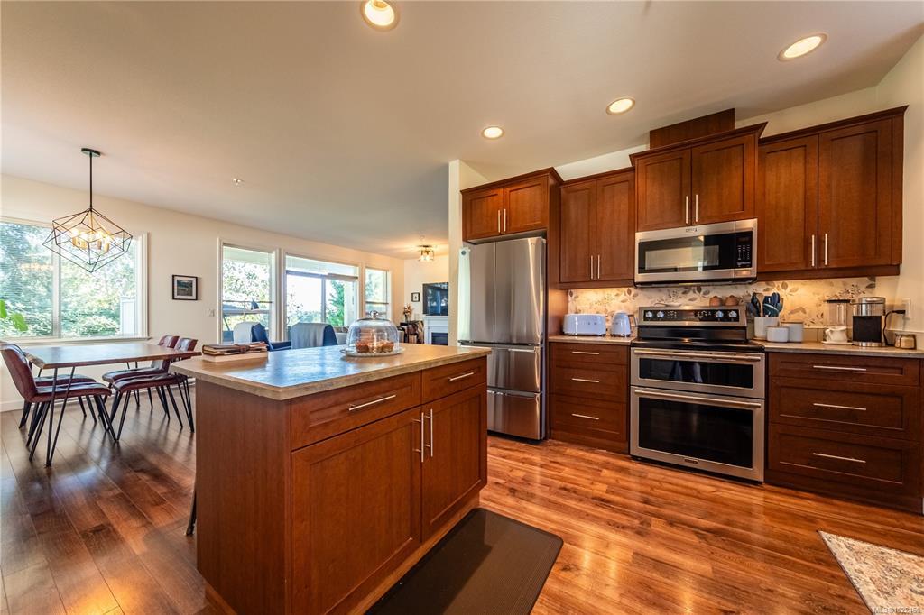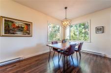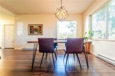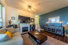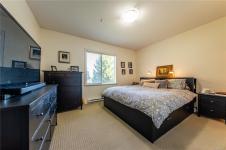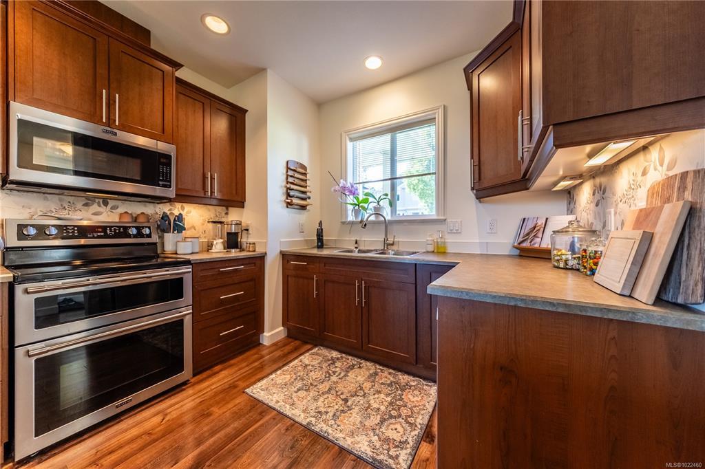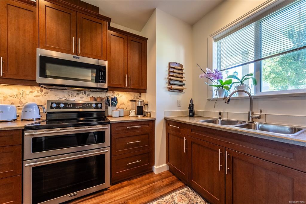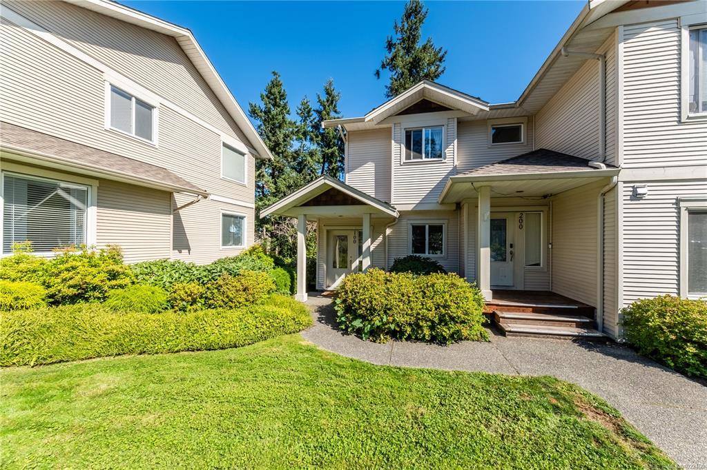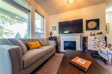 Level-entry end/corner townhome in sought-after University Heights. Flooded with natural light—thanks to tall ceilings just shy of 9' and two large double dining-room window—this 1,349 sq ft 3-bed/2-bath home is freshly painted and features upgraded appliances only 2.5 yrs old, including a double oven and fridge with double freezer. The functional plan offers a bright living/dining area, spacious primary with 3-pc ensuite & walk-in, plus an oversized laundry/storage room. Enjoy a private, fenced patio for outdoor entertaining and rare two parking stalls. Quiet, well-run 20-unit strata with flexible bylaws (up to 2 dogs/2 cats; no rental cap—verify). Prime University District location: steps to VIU, Colliery Dam Park & trails, waterpark, playground, biking paths, Quality Foods & transit. Truly move-in ready with city & mountain views. All data/measurements approximate; verify if important.