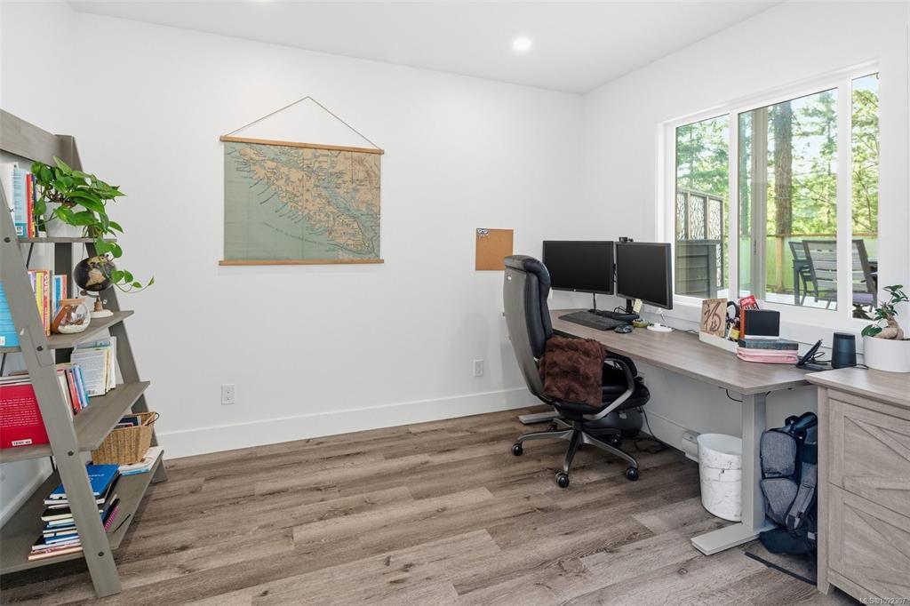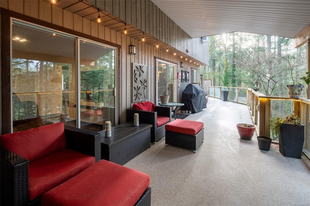 Exceptional property backing onto Butchart Gardens, located on a quiet cul de sac, this bright and welcoming family focused home offers 4 bedrooms and 3 bathrooms. Natural light fills the space with cedar vaulted ceilings and skylights, while a cozy electric fireplace creates the perfect setting for relaxed evenings. A standout feature is the large rec room over the garage, ideal for kids or hobbies. The kitchen offers ample workspace and a closet pantry. A renovated laundry and mudroom with heated floors adds everyday convenience. Recent updates include fresh paint throughout and an EV charger. The expansive wrap around deck creates a private outdoor living space backing onto green space, perfect for entertaining, playtime, or unwinding. A detached, fully finished office is ideal for working from home or storage. Double garage and a park just steps away complete this outstanding opportunity. Properties in this sought after location rarely come available, book your private tour today!