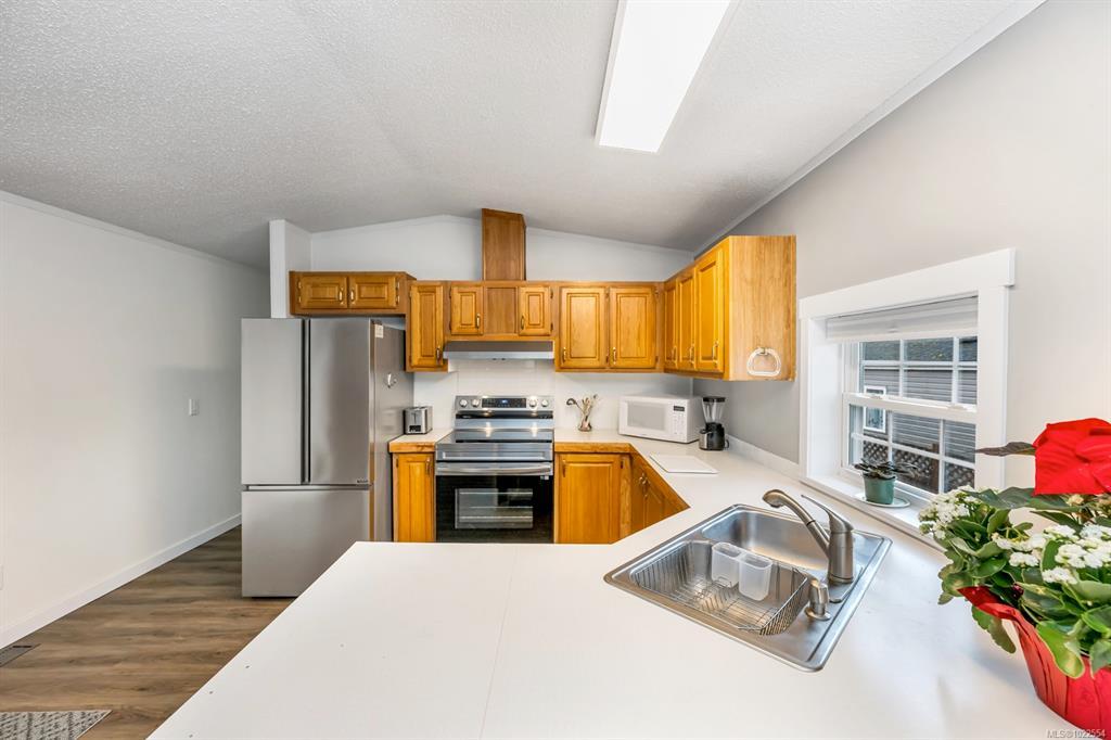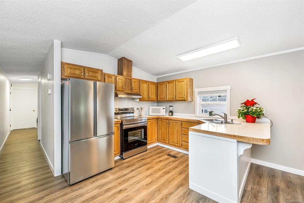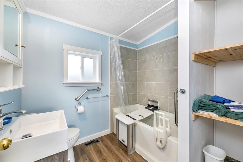 OPEN HOUSE SATURDAY 2 PM TO 4 PM - Family Park. Move right in and enjoy this fully updated, stylish, and accessible home—ready for immediate possession. Thoughtfully designed for independent living, it offers a no-step entry, widened doorways, fresh paint, new flooring, and modernized electrical throughout. The bright, open layout feels fresh and inviting, with anchored carpet in the primary for mobility aids. The brand-new 4-piece bathroom shines with updated fixtures plus a bath lift/shower chair for ease. You’ll also love the convenience of in-suite laundry, new appliances, privacy blinds, and a spacious 7' x 36' covered verandah—perfect for year-round enjoyment. Outdoors, the sunny, manicured lot includes a powered workshop, greenhouse, fenced garden site, and two parking spaces. Pet-friendly and practical, the location is on a direct bus route and within walking distance to shops, services and Sooke Centre. Live simply and love where you live. Bonus; only nice folks live here!