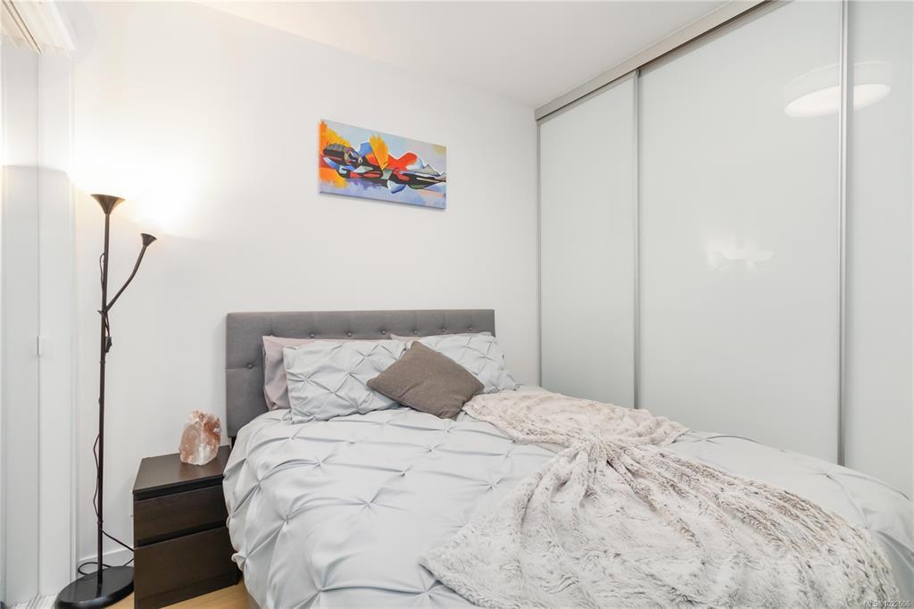 Live in the heart of Victoria at the iconic Black & White by Abstract Developments, where café culture and everyday conveniences are literally at your doorstep - with The Breakfast Shop downstairs, and Cook Street Village just a 5-minute walk away. This smartly designed home features a spacious bedroom with a large closet and sliding privacy doors that open to expand the living space or close for full separation - ideal for flexible living. Enjoy high-end finishes throughout, including a paneled Fisher & Paykel fridge, quartz countertops, gas cooktop, Fulgor Milano oven, engineered oak flooring, and a spa-inspired bathroom with heated tile floors and rain shower. Exceptionally pet-friendly (2 dogs, 2 cats, or 1 of each) with a common pet wash station. Building amenities include EV charging, bike storage, and a beautifully designed shared patio with BBQ and fire pit. MOVE IN READY AND PRICED TO ATTRACT SERIOUS BUYERS!