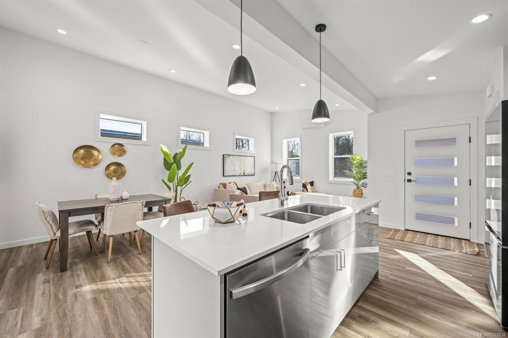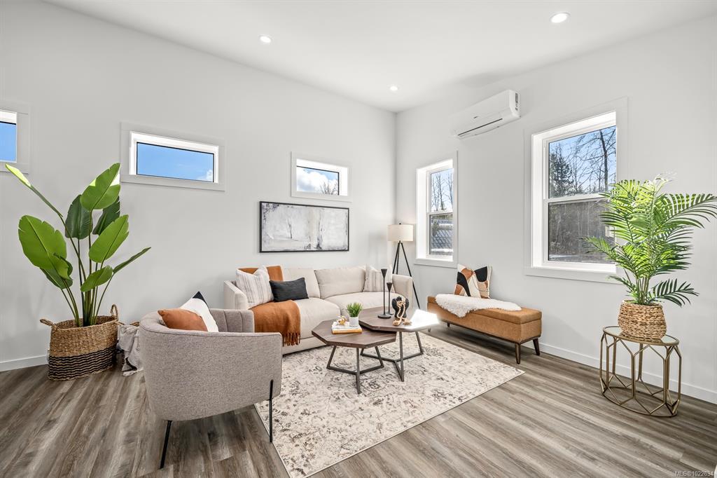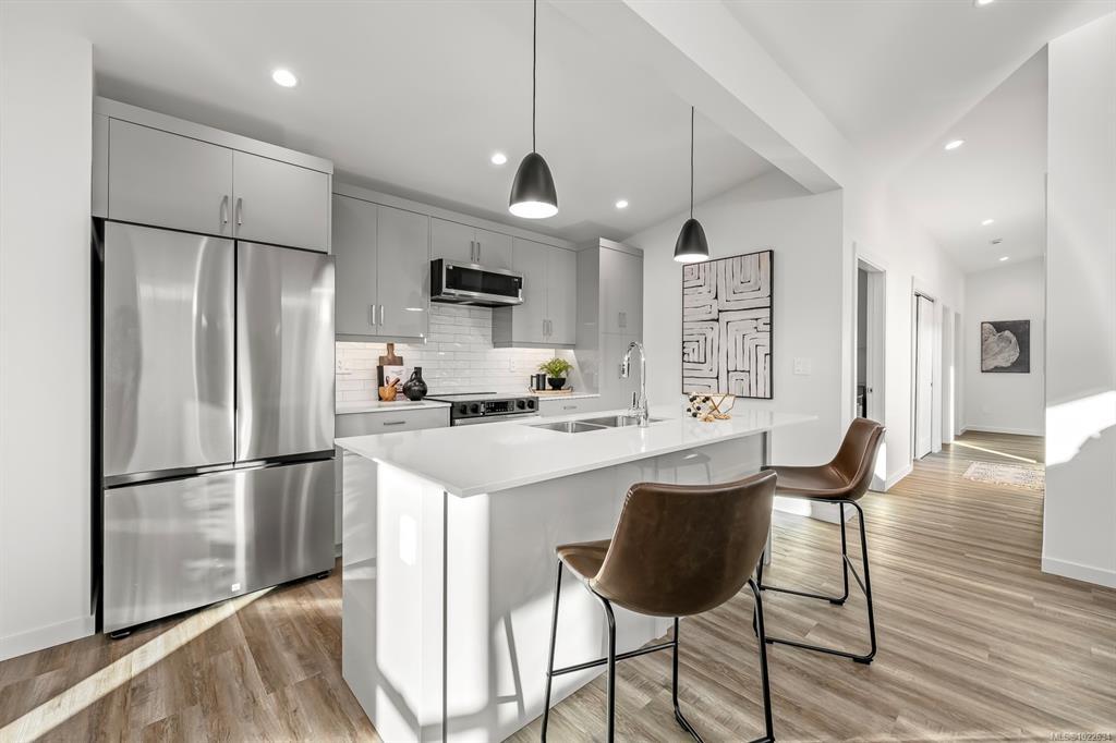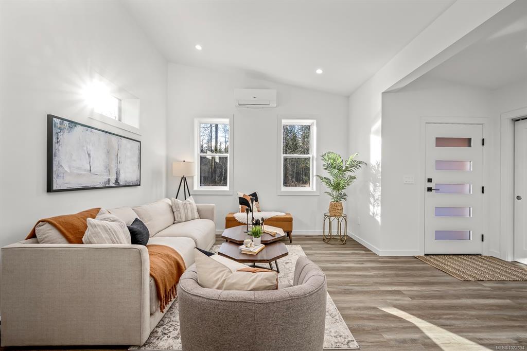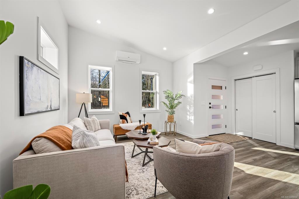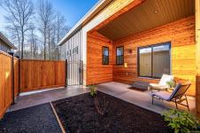 New and improved specification! The Phase 2 Lewis model is a gorgeous contemporary style home spanning 1,104 sq ft, with 2 bedrooms, 1 bathroom and a dreamy south-facing private covered patio. You'll love the open concept kitchen dining layout with soaring 11 7' ceilings, tasteful fixtures and accents throughout, modern high gloss white kitchen cabinets, tiled backsplash and quartz countertops. Don't forget the full appliance package. Large laundry room with sink and upper cabinets. Vaulted ceilings continue through to the bedrooms with large windows giving plenty of light. With steel frame construction, metal roof and metal siding, maintenance is minimal. The homes are incredibly well insulated and the efficient mini split heat pump will keep you warm and cool. Enjoy the extra long concrete driveway, fenced backyard, landscaping, irrigation and a shed as standard. Enjoy the plentiful storage space with numerous closets and a 5' poured concrete crawlspace. GST applies