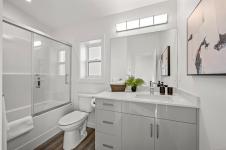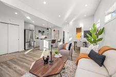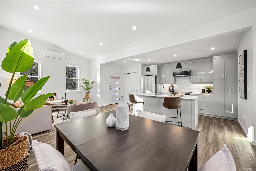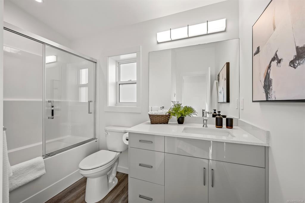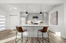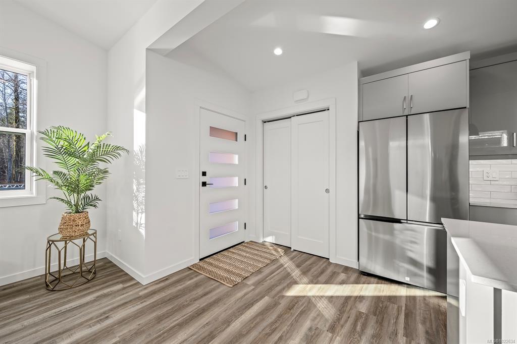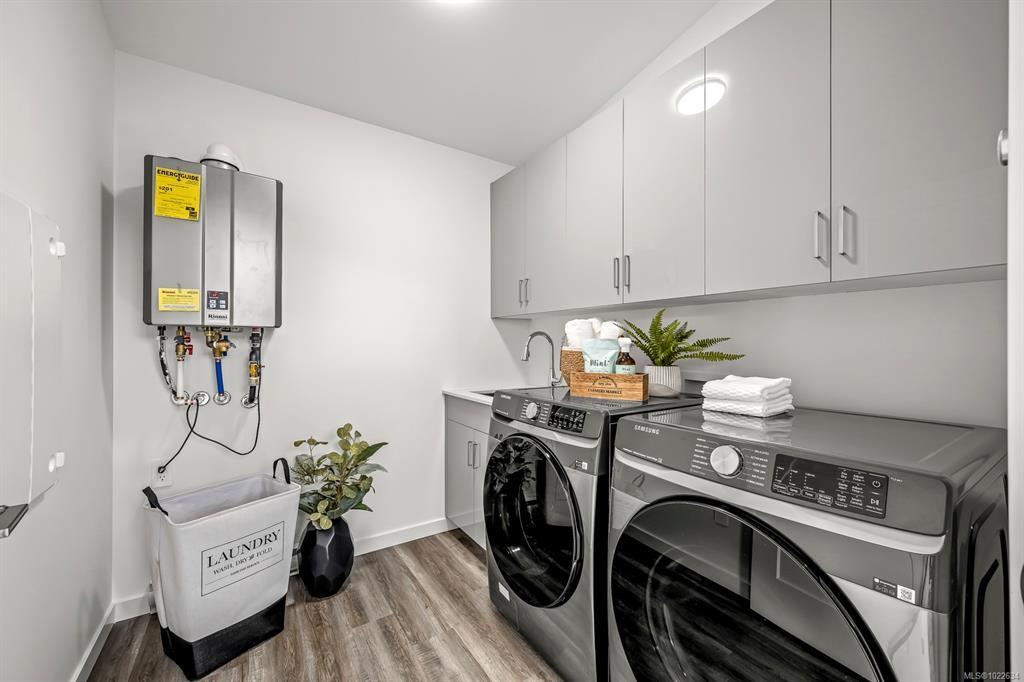 New and improved specification! The Phase 2 Lewis model is a gorgeous contemporary style home spanning 1,104 sq ft, with 2 bedrooms, 1 bathroom and a dreamy south-facing private covered patio. You'll love the open concept kitchen dining layout with soaring 11 7' ceilings, tasteful fixtures and accents throughout, modern high gloss white kitchen cabinets, tiled backsplash and quartz countertops. Don't forget the full appliance package. Large laundry room with sink and upper cabinets. Vaulted ceilings continue through to the bedrooms with large windows giving plenty of light. With steel frame construction, metal roof and metal siding, maintenance is minimal. The homes are incredibly well insulated and the efficient mini split heat pump will keep you warm and cool. Enjoy the extra long concrete driveway, fenced backyard, landscaping, irrigation and a shed as standard. Enjoy the plentiful storage space with numerous closets and a 5' poured concrete crawlspace. GST applies