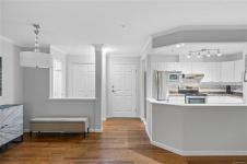 Nestled in the Longwood community, the Carisbrooke building offers a serene setting with beautifully landscaped grounds. This 2-bedroom home boasts an open, airy floor plan with a spacious, functional kitchen that provides plenty of storage. The split-bedroom layout ensures privacy, with the primary suite featuring a walk-through closet, 4-piece ensuite & direct access to the covered deck—perfect for morning coffee or evening relaxation. The second bedroom connects to the main 4-piece bathroom and sits next to the roomy laundry area. Located in the highly sought-after Edgewater community, you’re just steps from Longwood Station, Oliver Woods Community Center & North Town Centre. Residents enjoy a well-run strata with a clubhouse, multiple guest suites and a fitness area. Secure underground parking includes a car wash station, bike storage & woodworking room. Strata fees cover 1 parking space, a storage locker, natural gas & hot water. One dog or cat is welcome & rentals are permitted.