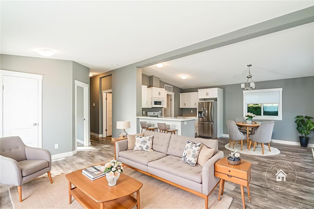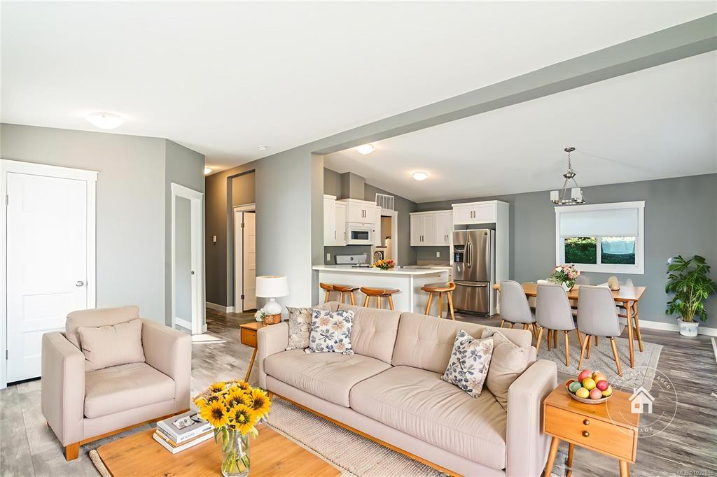 Welcome to your dream home in the sought-after Sharman’s Mobile Home Park, a peaceful 55+ community offering the perfect blend of comfort and convenience. This brand-new 2024 manufactured home features 2 bedrooms, a den, and 2 beautifully finished bathrooms, providing a modern and spacious layout ideal for downsizing in style. Enjoy the open-concept living area with vaulted ceilings and large windows that fill the space with natural light. The contemporary kitchen includes matching white appliances, ample cabinetry, and a generous island—perfect for entertaining or everyday living. The primary suite offers a large closet and a 4-piece ensuite with double sinks and a tiled shower. Ideally located within walking distance to Superstore, restaurants, shops, parks, and transit. A rare opportunity for modern living in a vibrant community. All measurements are approximate; verify if important. Price is plus GST.