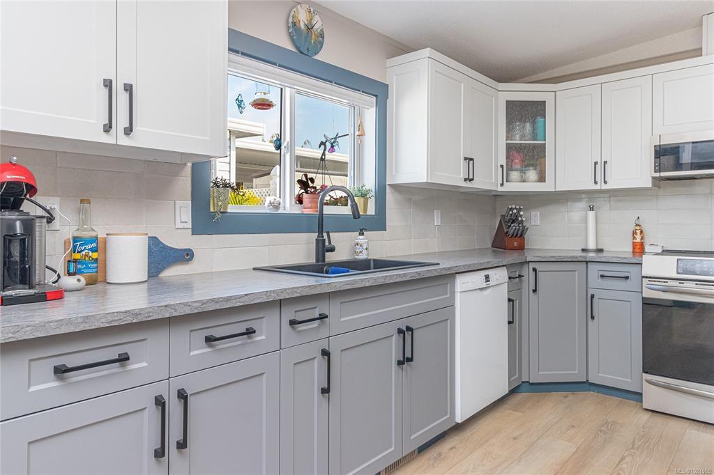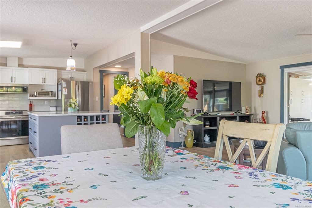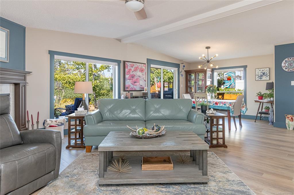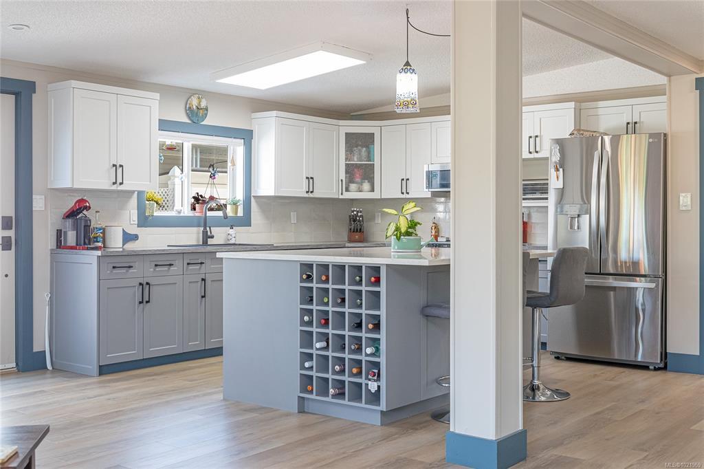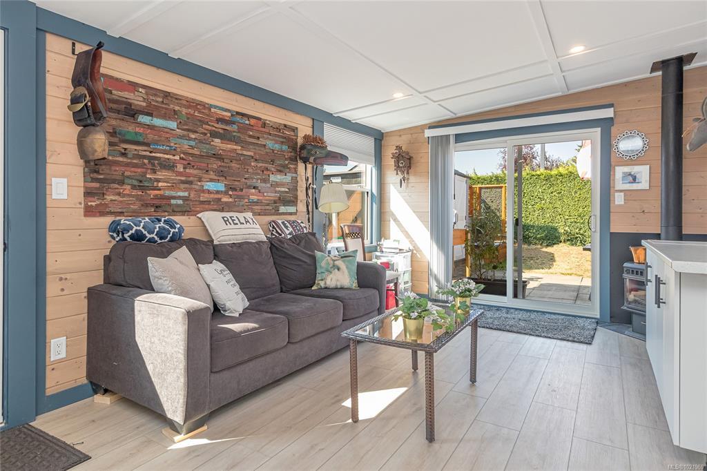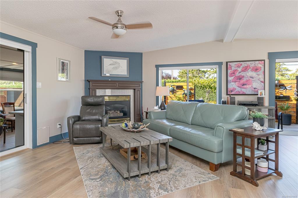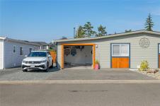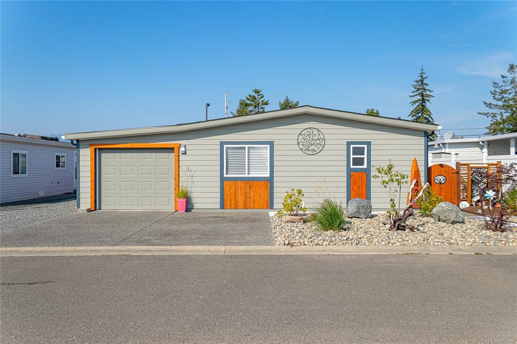 FULLY RENOVATED INSIDE & OUT – MOVE-IN READY 55+ HOME Beautifully updated 1,485 sq ft modular home in the well-run Shellybrook Estates. This 2-bed, 2-bath open-plan home features vaulted ceilings, spacious living/dining areas, and a bright kitchen with new cabinet doors, a large new island, updated plumbing fixtures, and flooring throughout. New interior doors, paint, and trim add a fresh, modern feel. A new family room with a gas stove and pantry cabinetry offers a flexible living space. The primary bedroom includes a walk-in closet and an ensuite with a soaker tub and shower. Exterior upgrades include new siding and trim, new sliding and exterior doors, Trex and wood decks, low-maintenance landscaping, side-yard fencing, and two new garden sheds. Heat pump, gas fireplace, and garage with workshop. Small pet with approval, no rentals. Walk to shops, beach, and downtown Parksville—an excellent alternative to condo living. Affordable pad rent in a quiet, well-managed park.