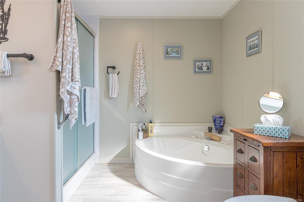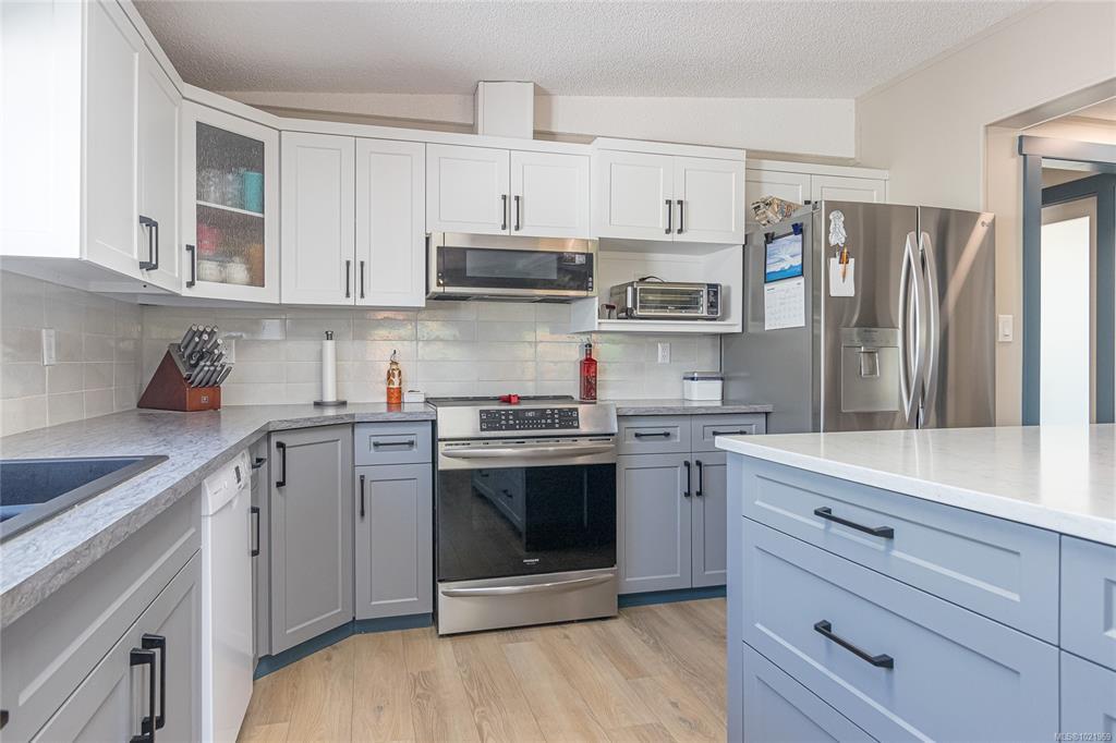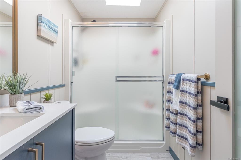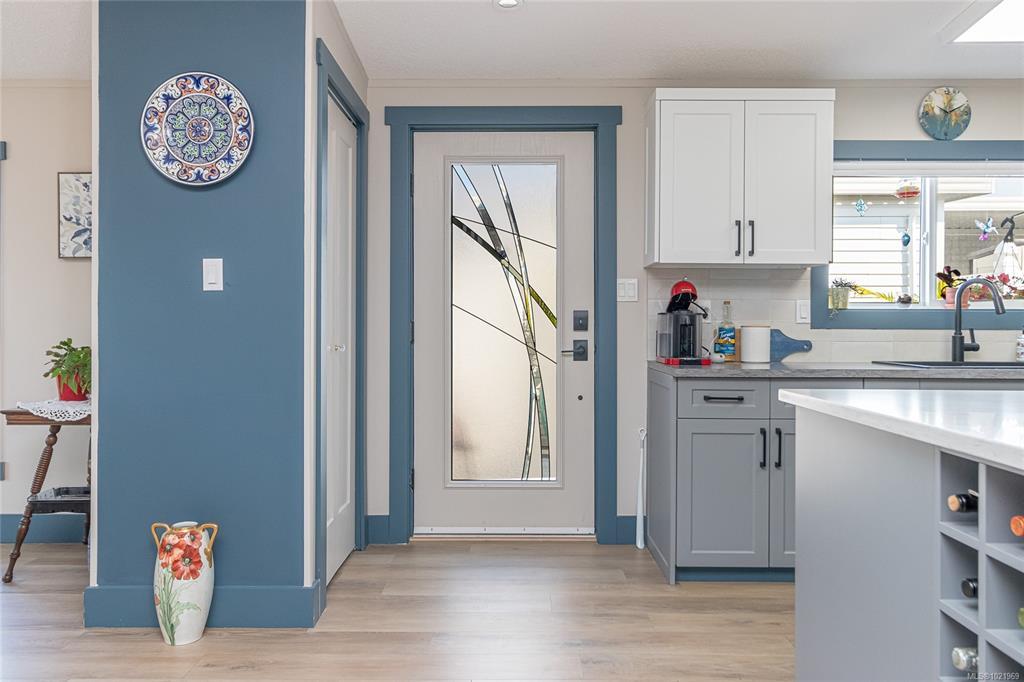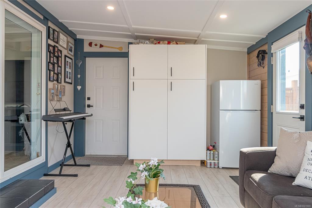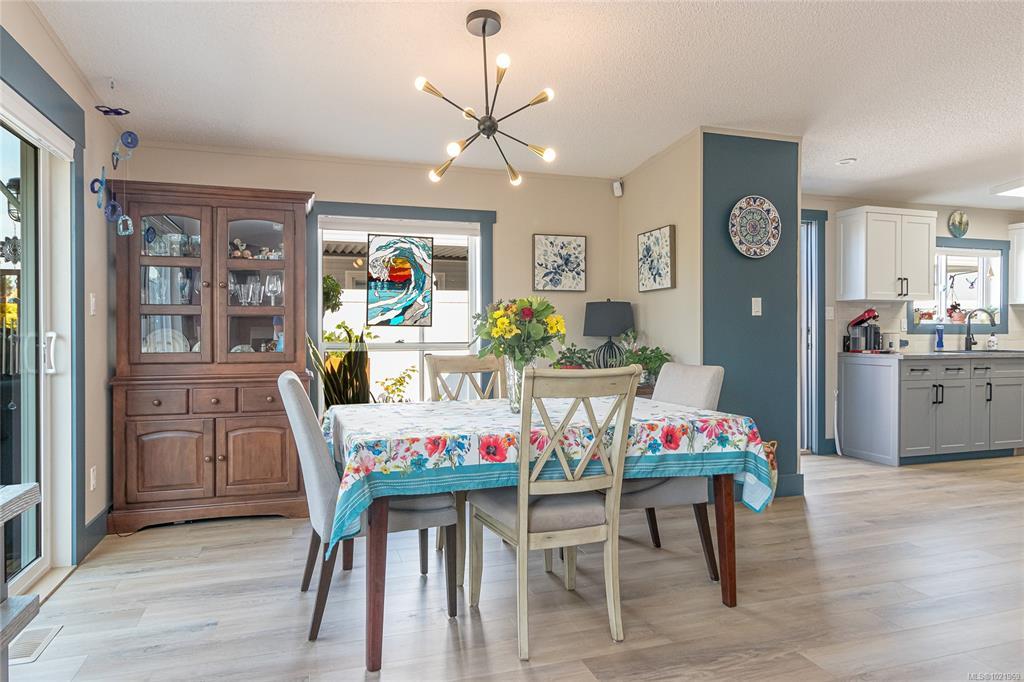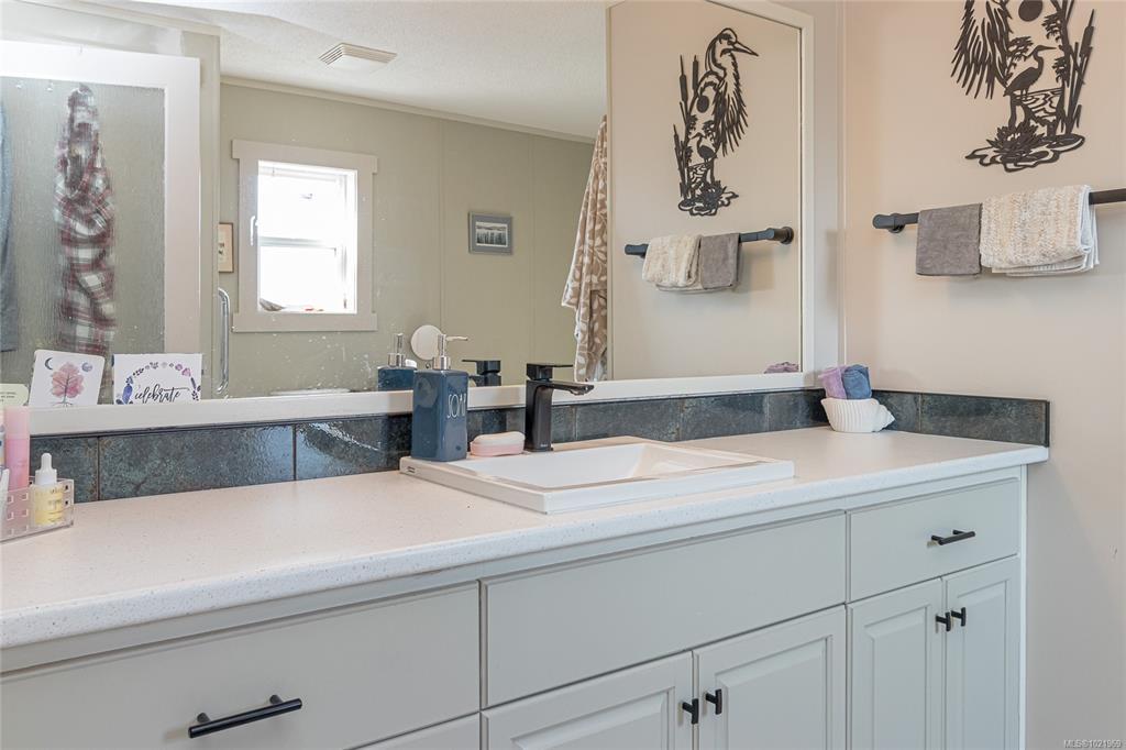 FULLY RENOVATED INSIDE & OUT – MOVE-IN READY 55+ HOME Beautifully updated 1,485 sq ft modular home in the well-run Shellybrook Estates. This 2-bed, 2-bath open-plan home features vaulted ceilings, spacious living/dining areas, and a bright kitchen with new cabinet doors, a large new island, updated plumbing fixtures, and flooring throughout. New interior doors, paint, and trim add a fresh, modern feel. A new family room with a gas stove and pantry cabinetry offers a flexible living space. The primary bedroom includes a walk-in closet and an ensuite with a soaker tub and shower. Exterior upgrades include new siding and trim, new sliding and exterior doors, Trex and wood decks, low-maintenance landscaping, side-yard fencing, and two new garden sheds. Heat pump, gas fireplace, and garage with workshop. Small pet with approval, no rentals. Walk to shops, beach, and downtown Parksville—an excellent alternative to condo living. Affordable pad rent in a quiet, well-managed park.