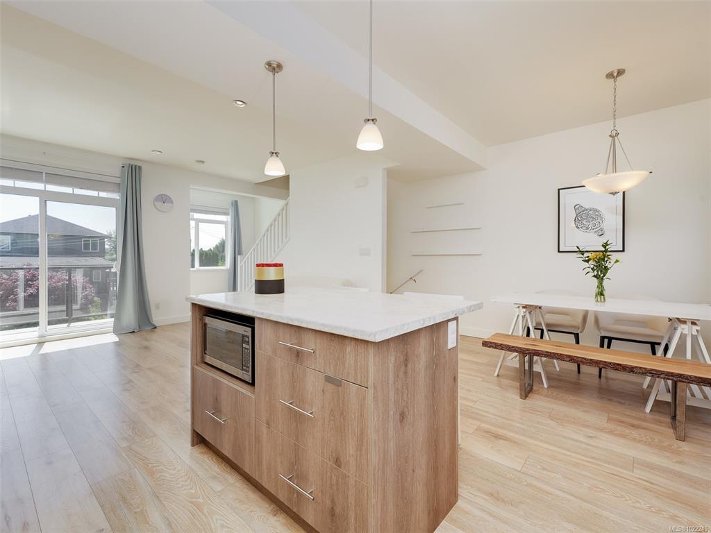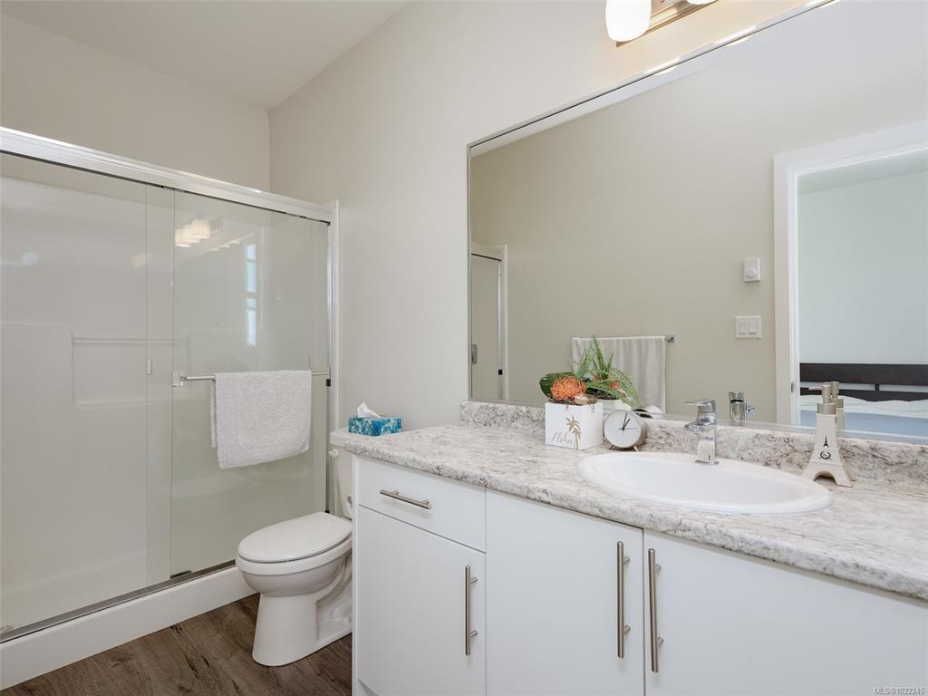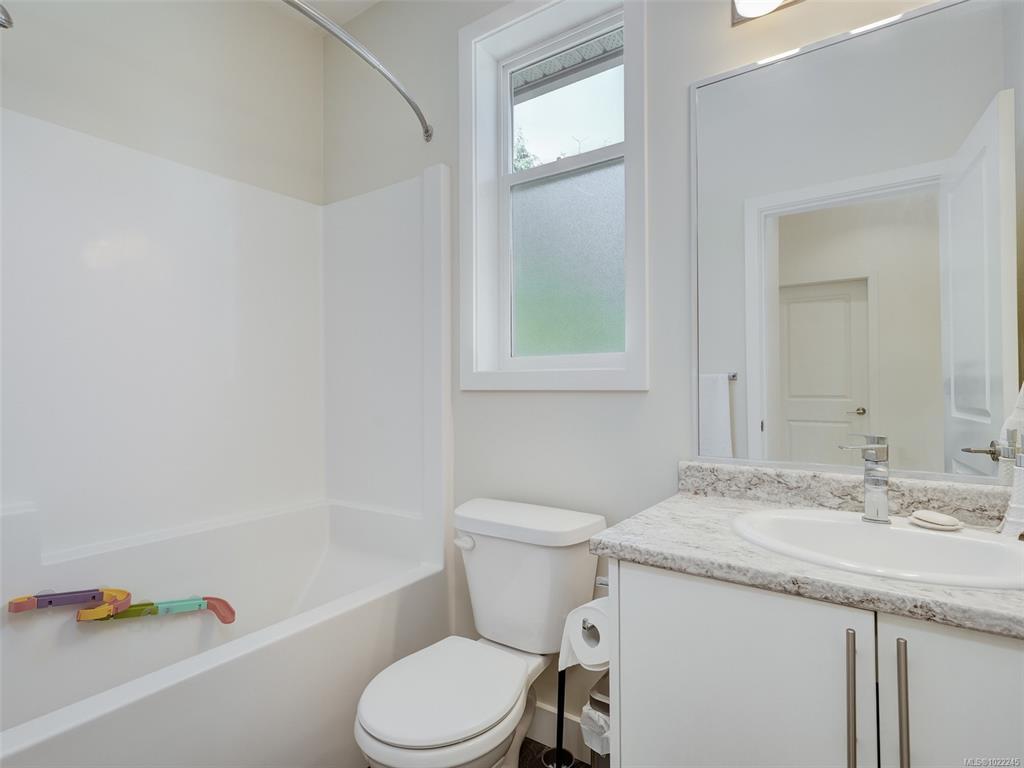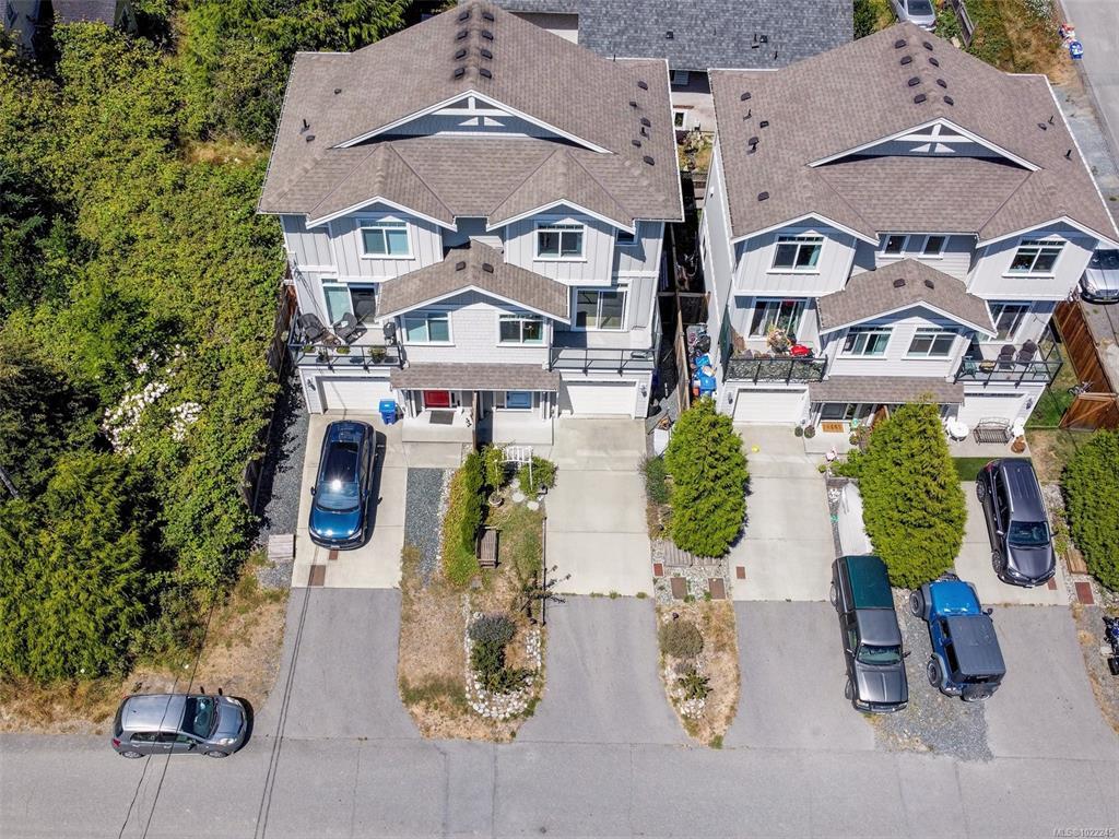 Ocean & East Sooke VIEWS! Spacious, sparkling & affordable, 3 bed, 3 bath, 1590sf strata duplex conveniently located just a short stroll to waterfront, schools, bus & only mins to Sooke Centre. Bright, open floor plan awash in light thru picture windows & enhanced by airy 9ft ceilings. Kitchen w/soft close cabinets, island w/breakfast bar, dual SS sinks, tile backsplash & SS appliances. Large inline dining rm for family dinners. Living rm w/cozy electric fireplace opens thru sliders to oceanview deck - perfect for BBQs or to just relax & enjoy the uplifting views over the Sooke Harbour. Up: Oceanview master bedroom & 3pc ensuite bathroom, 2nd bedroom & 4pc main bathroom. Down: 3rd bedroom, 3pc bathroom, laundry & garage w/laminate flooring. You will love the Hot Tub in the fenced/gated back yard. Single garage & driveway parking- room for your RV or Boat. Strata Fee is the Annual Shared Building Insurance. A great value in today's real estate market!