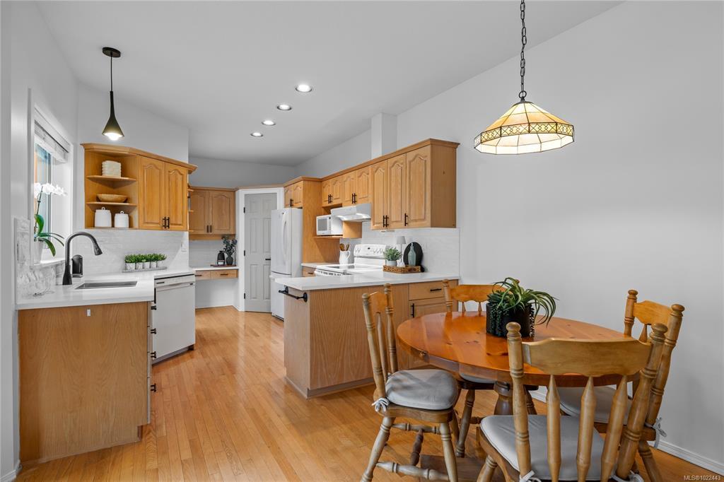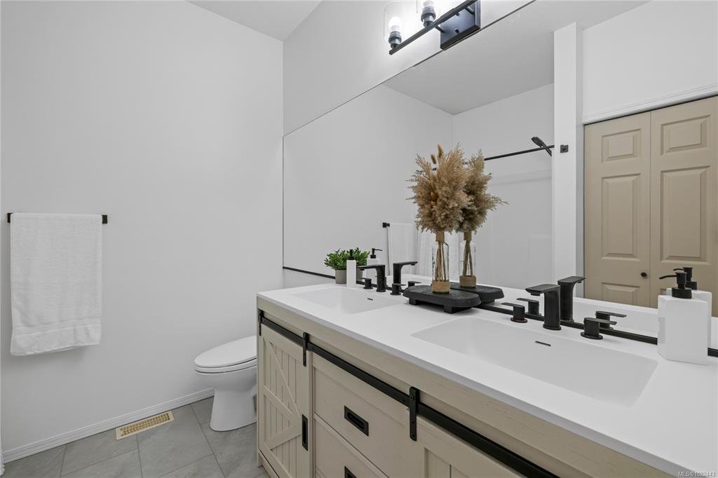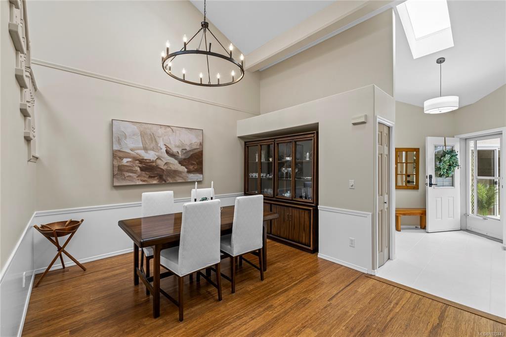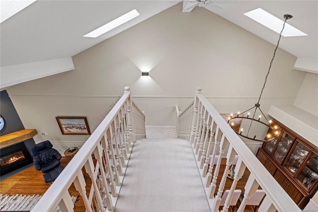 Live your golden retirement era here at Ocean Walk! Fully renovated 1983 sqft home in desirable & convenient North Nanaimo. Private courtyard steps into 17’8 ceilings + skylights. 9 ft ceilings span the main floor into show-stopping kitchen: solid oak cabinets, thick quartz counters, tiled backsplash, pantry + office/tv area & oak hardwood floor. Host-worthy dining room has bamboo hardwood flowing into the living rm with gas fireplace. Private rear patio extends living. Choose your primary bedroom! On the main: his/her closets & gorgeously renovated bathroom with dbl sink vanity & tub/shower combo. Upstairs: private deck, feature wall + reno’d bath with motion lit dbl vanity & shower. 3rd bdrm & 3rd bath fully reno’d w/ shower on main. Plenty of storage: crawl space, dbl garage + storage room. Gas furnace, & hot water! Ocean Walk has clubhouse w/guest suite, community & carefree living. Steps to library, coffee, restaurants, Woodgrove, parks & beaches. You can have it all!