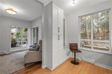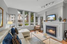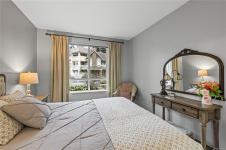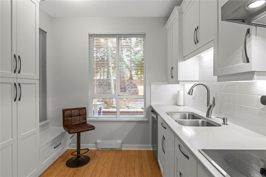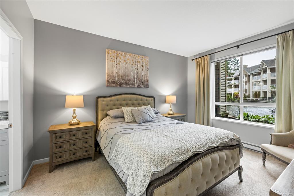 This beautifully updated home offers a rare and tranquil setting directly overlooking the serene pond. Enjoy the spacious, partly covered patio located right at the water’s edge. Inside, the fully renovated kitchen features abundant white cabinetry and stainless appliances including a wall oven and cooktop, with a family room conveniently located off the kitchen. The living room offers a gas fireplace and a wall of windows capturing calming pond views, with an adjoining dining room ideal for entertaining. The primary bedroom also enjoys pond views and includes a walk-in closet and updated three-piece ensuite. A second bedroom and additional three-piece bathroom provide flexibility. Full-size in-unit laundry, a storage room, and two separate storage lockers add convenience. Residents enjoy park-like grounds, a clubhouse, workshop, underground parking, gas included, and one dog up to 10 kg or one cat allowed. All data & measurements are approximate & must be verified if fundamental.