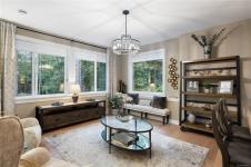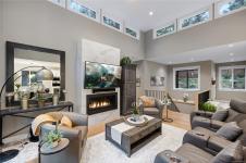 Masterfully built by Larry Nylen Construction, this 3,497 sq. ft. West Coast contemporary residence in Shawnigan Lake showcases exceptional craftsmanship and refined design. A ground-level entry leads to elevated main living, where an open-concept layout is highlighted by dramatic 14-foot ceilings and clerestory windows that bathe the home in natural light. The chef-inspired kitchen features premium WOLF, SUB-ZERO, and Fisher & Paykel appliances, a statement quartz island, and an enviable walk-in pantry. The primary retreat offers a spacious walk-in closet and spa-like ensuite with soaker tub, walk-in shower, and heated floors, complemented by two guest bedrooms, a full bath, and laundry on the main level. The lower floor hosts a media room, den, gym, and 3-piece bath. Outdoors, a south-facing deck invites effortless entertaining. Set on a private, low-maintenance 0.49-acre landscaped lot with irrigation, just minutes to the lake and schools.