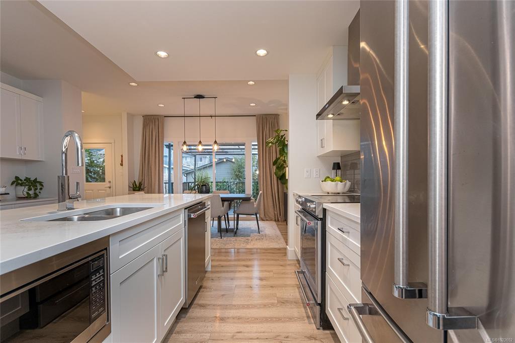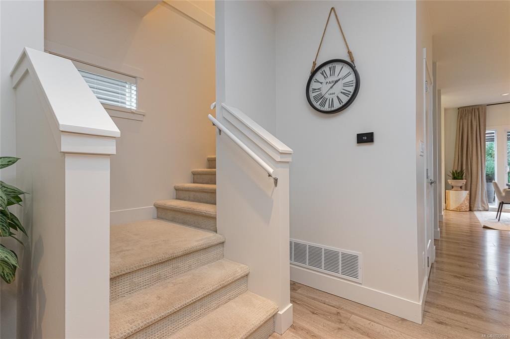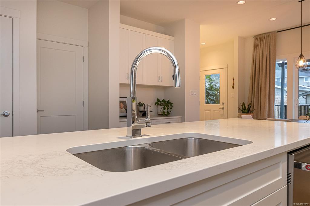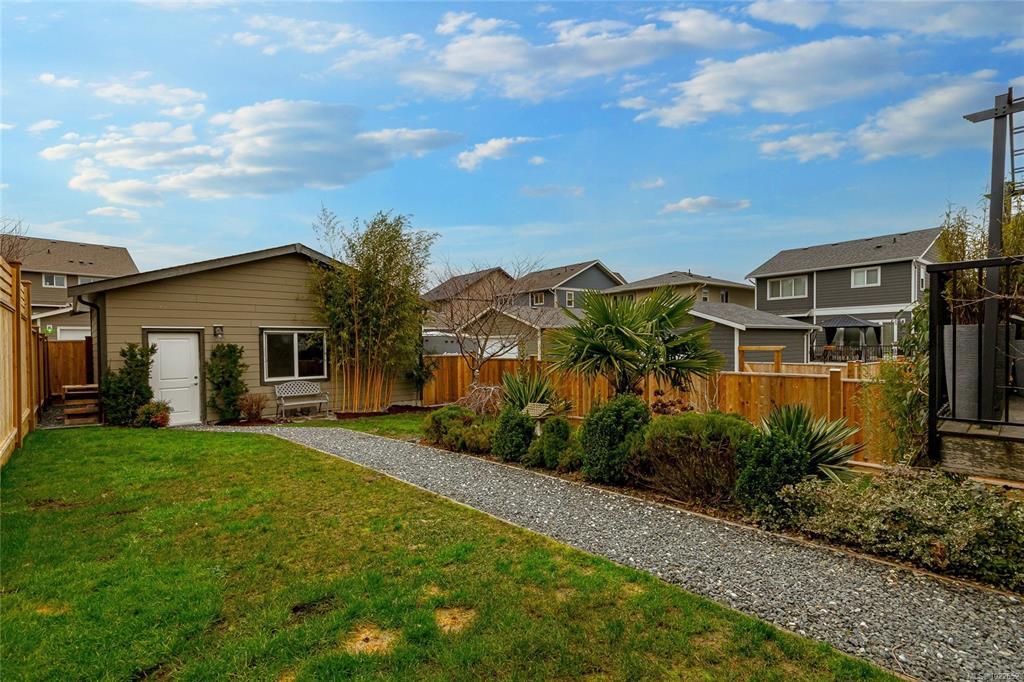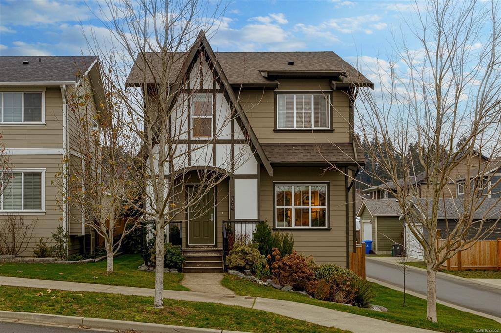 Welcome Home to this Royal Bay charmer on an established street. Start the day on a cozy patio, perfect for your morning coffee. Main level features open floor plan with a well-appointed entrance, spacious living and dining room areas and a chef’s kitchen. Upstairs find 3 bedrooms and laundry. Generous primary suite with a large 4-piece ensuite and a walk-in closet. Completing the interior is a spacious, unfinished basement. Possibilities are endless, turn it into a suite, or an extra space for the family, bathroom is already roughed in! Outside features BBQ-ready family-sized deck. Large sized back yard is a gardener’s dream with mature trees, flower beds and plenty of space for more ideas. Detached double car garage and a RARE! additional outside parking spot on this property. Lots of upgrades including sprinkler system, electric car charger and a solar-ready tech installed. Steps to everything in Royal Bay Village, 10 min to Costco and 25 min to Downtown Victoria!