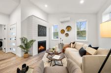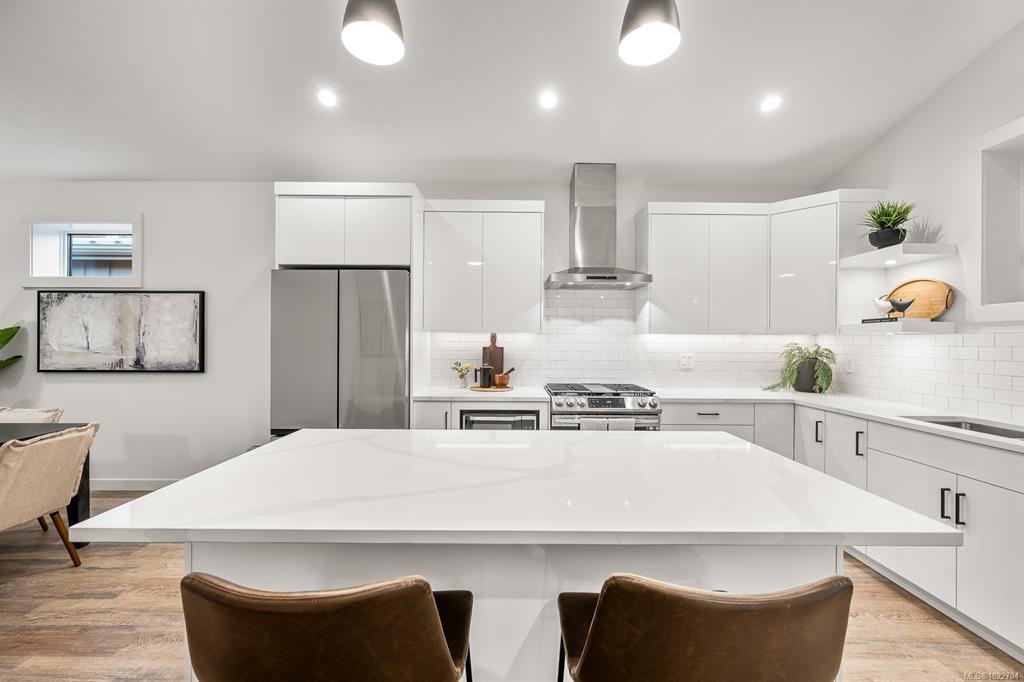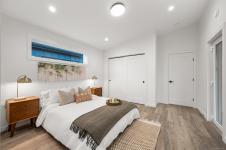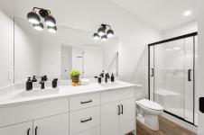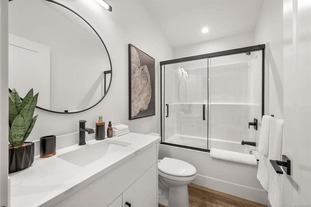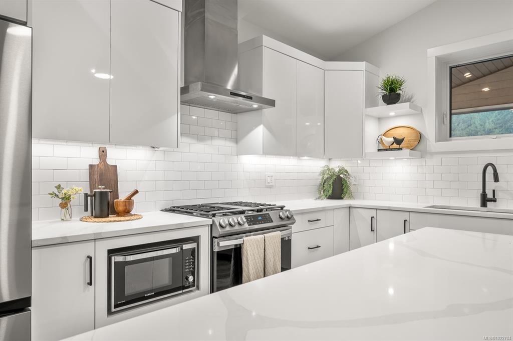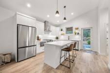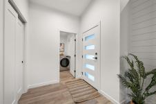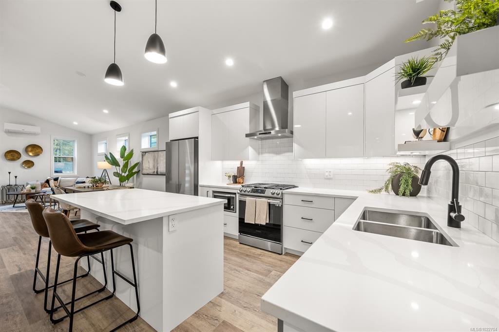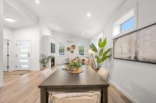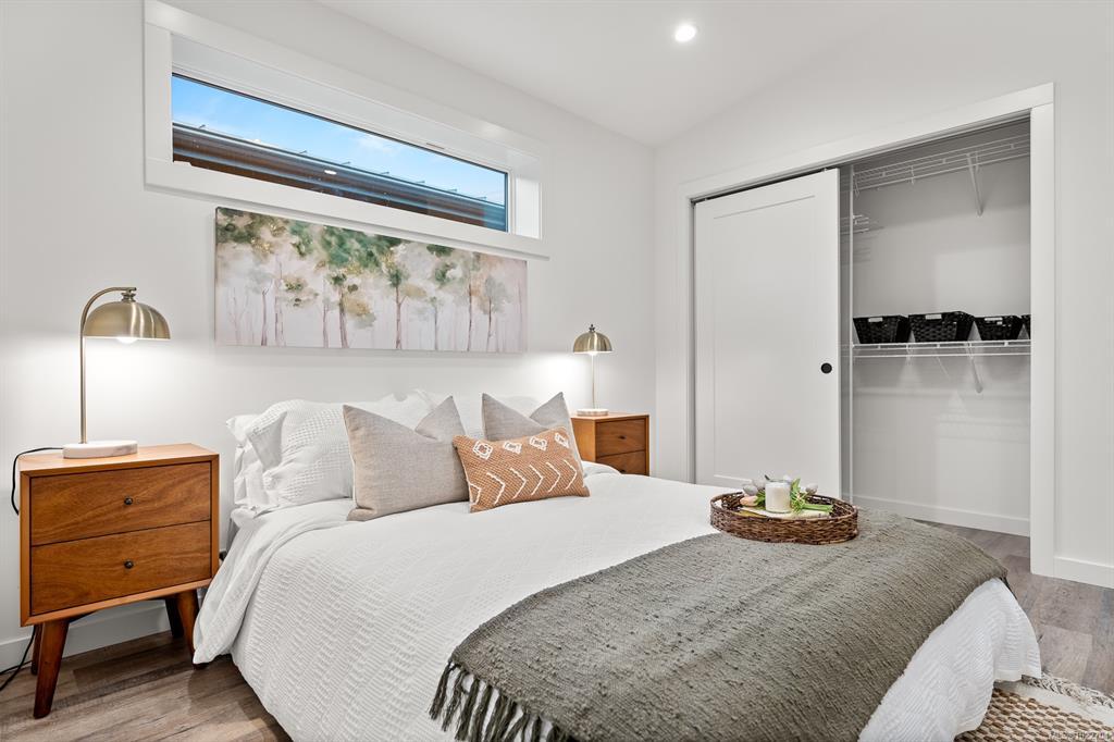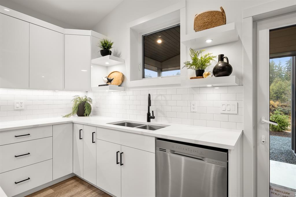 New and improved, The Northern Flicker is a stunning 2 bed 2 bath home offering incredible value. Spanning over 1,200 sq ft, you'll be impressed with the spacious layout, contemporary design and high end finishings. Turn-key ready with full appliance package, quartz countertops, heat pump, modern kitchen cabinets, large island and well appointed laundry room with storage, sink and quartz countertops. The open concept kitchen-dining-living area is light and airy with soaring 12 ft vaulted ceilings and 7 windows for plenty of natural light. The show stopper Is the 14' x 10' covered rear patio, perfect for relaxing with family and entertaining friends. With a metal frame, metal siding and metal roof, maintenance is minimal. Notice the thick 12' walls, high energy performance and low running costs. GST applies. The Flats of Cumberland is a brand new community of 56 beautiful homes