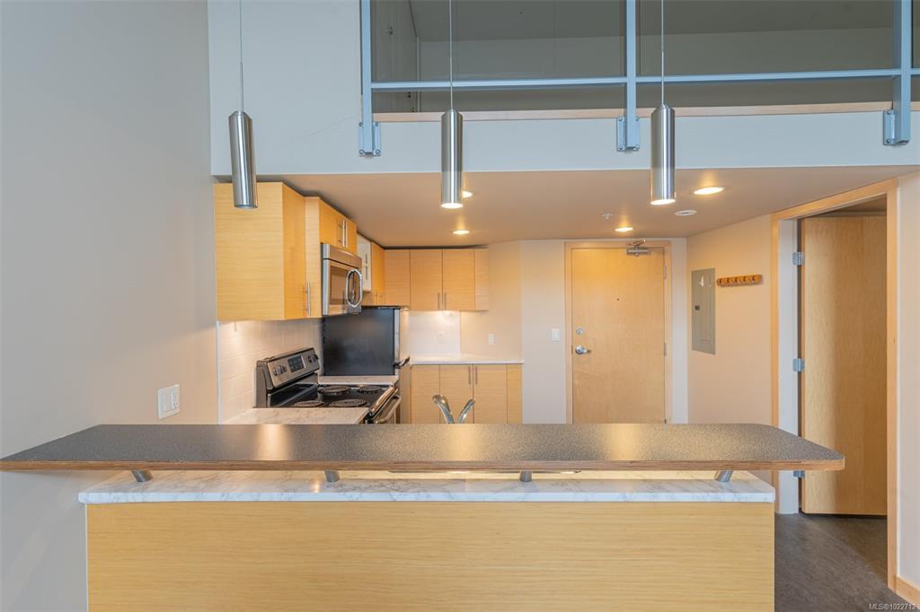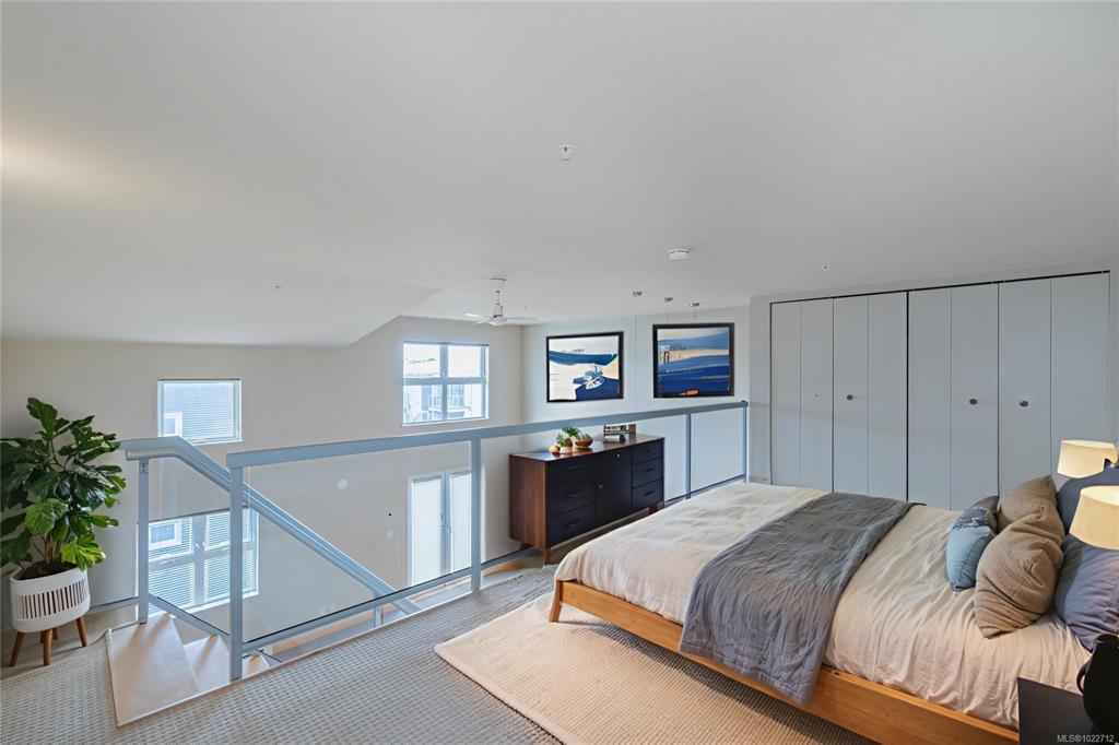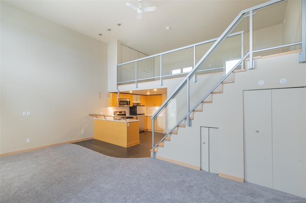 Top-Floor Loft Living at The Railyards! This bright and airy 1-bedroom, 1-bath home impresses with its soaring 14ft ceilings, open-concept design, and oversized bathroom. French doors open to a sunny private balcony, while the spacious ~230sq.ft. lofted bedroom provides the perfect retreat. Set in one of Victoria’s most walkable and bikeable neighbourhoods, you’re just steps from the Galloping Goose Trail and a 5-minute stroll to shops and restaurants at Westside Village. Downtown’s historic district is an easy 20-minute walk or quick bike ride away. A public dock only 150m from your door invites you to swim, paddleboard, or launch your kayak into the scenic Gorge Waterway. This home includes dedicated parking and a separate storage locker. The professionally managed strata offers bike storage and welcomes all ages, pets, and rentals. Enjoy an active, vibrant lifestyle in one of Victoria’s most sought-after waterfront communities—this top-floor loft is truly one of the Railyards’ best.