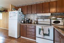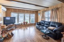 Quiet, peaceful, and very private, this 60+ community offers a welcoming place to call home. Monthly pad rental with no head lease. Centrally located, this two-bedroom mobile is ready for its next chapter and awaits your personal finishing touches. Enjoy the bright sunroom, eat-in kitchen, and a large bay window that fills the living room with natural light. The primary bedroom features a built-in dresser, with laminate flooring throughout. The oil tank has been removed and efficient heat pumps installed, with one head in the living room and another in the primary bedroom. A fantastic storage shed includes electrical and plumbing with a 2-piece bath. Set on a beautiful lot, this is an excellent opportunity for a comfortable and relaxed retirement lifestyle.