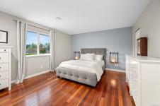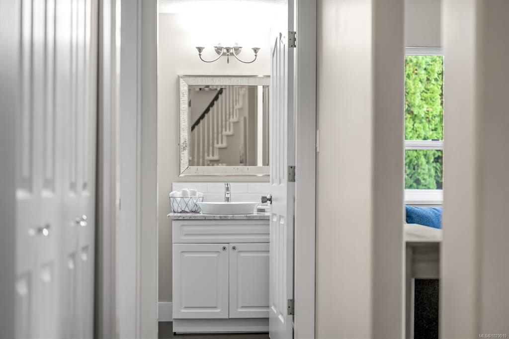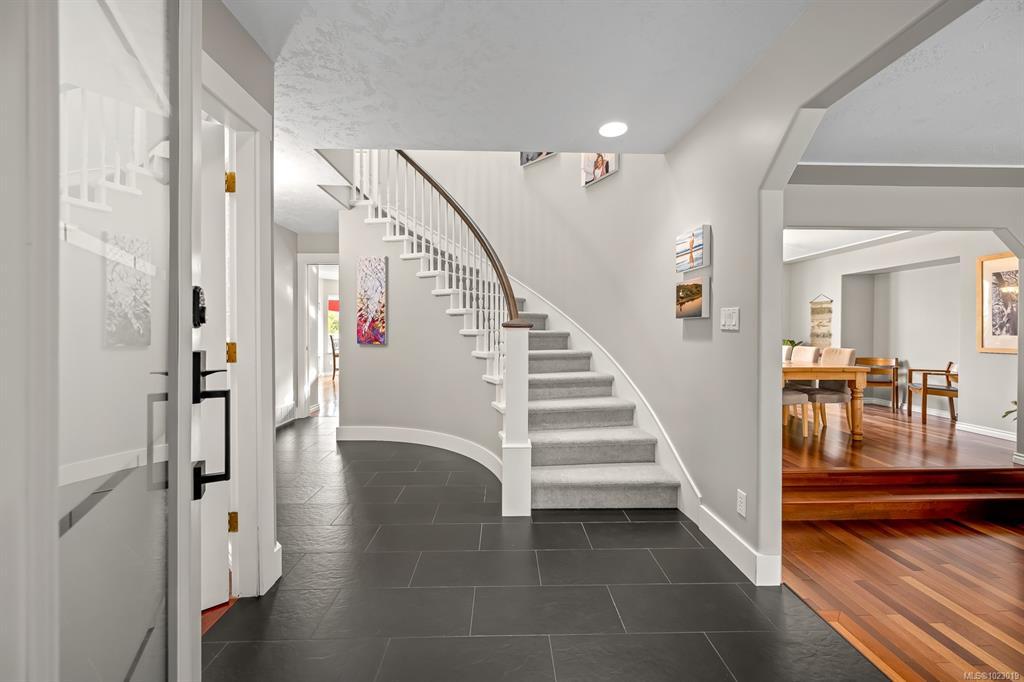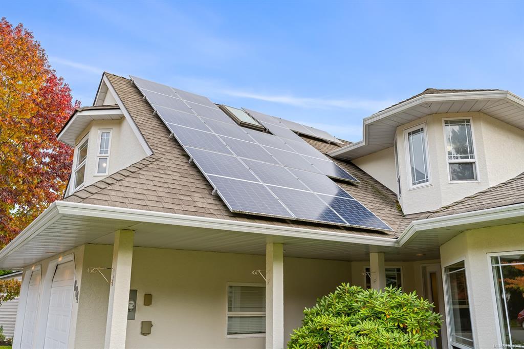 Say goodbye to your hydro bill. With a new heat pump, blown-in insulation, on-demand hot water, and solar panels, this house is step five energy efficient. Other upgrades include impeccably built storage in the primary walk-in closet, updated flooring, and a stylish front door. Nestled on a quarter-acre lot in a welcoming, family-friendly cul-de-sac, near schools, shopping, beaches, walking & biking trails. Up the curved staircase, there are three bedrooms, a four-piece bath and a bonus room, a spacious primary bedroom and luxurious ensuite with heated floors, separate shower and soaker tub. Room for everyone downstairs, den/office, gourmet kitchen with gas range and stainless steel appliances, formal dining and living room, as well as a family room and breakfast nook. A double garage big enough for two cars and toys. A basement workshop and spacious crawl space with lots of room for storage. Beautifully landscaped with an irrigation system and RV parking, this house has everything.