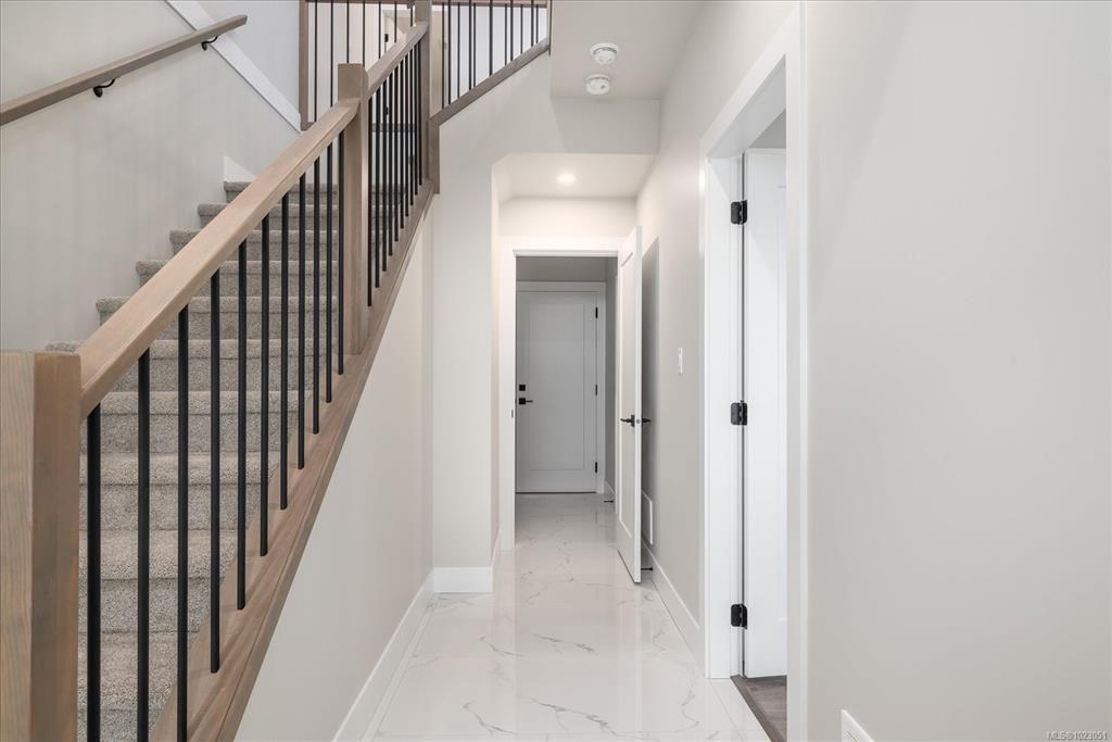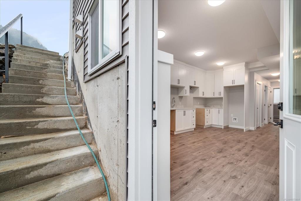 Enjoy sweeping ocean views from this brand-new home in beautiful Ladysmith. Offering approximately 2,760 sq ft of thoughtfully designed living space, this home features 5 bdrms and 4 baths, including a fully self-contained 2-bdrm suite w its own side entrance and in-suite laundry. The main living area is located on the upper level to capture stunning views of Ladysmith Harbour and the coastal mountains. The kitchen offers ample cabinetry, generous counter space, and a large island w seating, perfect for entertaining. Coffered ceilings, expansive windows, and a natural gas fireplace create a bright, inviting atmosphere. Step onto the front deck from the living room and enjoy beautiful sunrises. The primary suite includes a walk-in closet and spa-inspired ensuite w a tiled walk-in shower. Two additional bedrooms and a 4-piece bath complete the main floor. The lower level features the legal suite, plus a den and 2-piece bath. All information should be verified if fundamental to purchase.