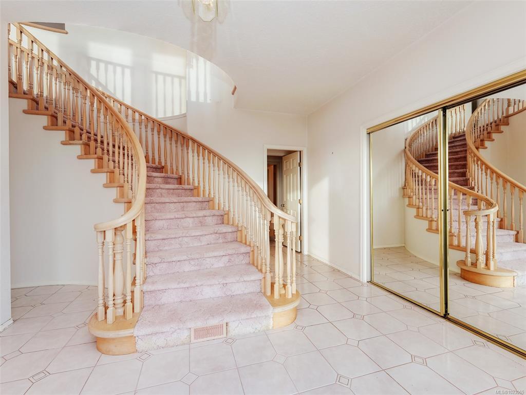 Million-dollar views from this over 4,300 sq. ft. family home with additional accommodation situated on one of the highest peaks in the neighbourhood. As you enter this grand home, you can't help but be immediately impressed by the formal entrance with a winding staircase leading to the upper main floor living area, which includes a large formal living room and dining room, a spacious kitchen with an eating area, plus an oversized family room. Spectacular master bedroom with an extra-large ensuite bathroom featuring a jetted tub plus a second bedroom. The lower floor has a large living room, three bedrooms, a kitchen with an eating area and a laundry room. Lots of windows and light, plus a curved balcony, across the whole front of the house, take advantage of views of the ocean, mountains and city. Lots of parking with a double-car garage at the rear of the house, plus two parking spots in front. Sold AS IS WHERE IS.