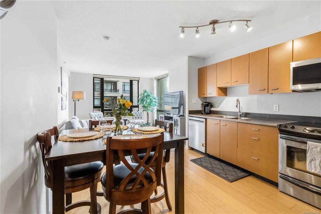 Welcome to The Astoria, a well-maintained steel and concrete building by award-winning Concert Properties, located in the heart of Victoria’s sought-after Humboldt Valley. This fully furnished, turnkey one-bedroom plus den offers a smart, functional layout ideal for first-time buyers, professionals, or investors. The bright corner suite features stainless steel appliances, in-suite laundry, and a private balcony. The versatile den is perfect for a home office or guest space. Secure underground parking and separate storage are included. The pet-friendly building has no rental restrictions and offers an on-site caretaker, fitness room, and social lounge with kitchenette and pool table. Steps to downtown amenities, restaurants, art galleries, Beacon Hill Park, and the Inner Harbour, this home offers exceptional walkability in a prime location.