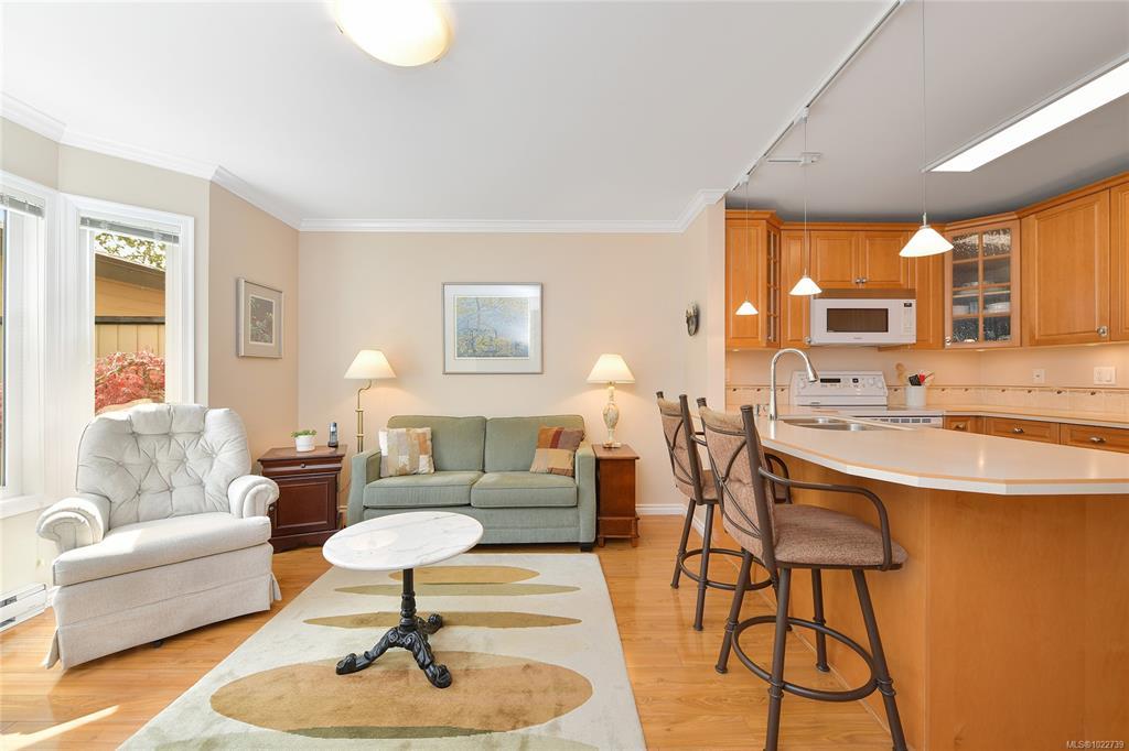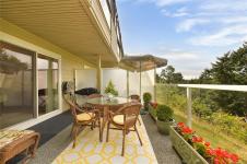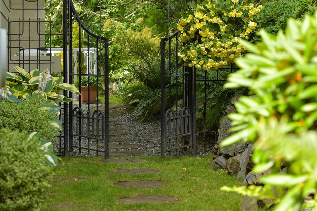 Nestled on a hill is tranquil Wedgewood Estates, a gated community in prestigious Ten Mile Point. This beautiful 2 level townhome is an end unit and is surrounded by nature to truly enjoy peace and quiet. The main floor has a large living room with fireplace that over looks the patio and has views of Phyllis Park. Entertainment size dining room with patio access and a tastefully updated kitchen with sunny family room. Upstairs are 2 spacious bedrooms that are well separated plus a den off the master bedroom. Enjoy two large patios to follow the sun with plenty of room for gardening and lounging. A double car garage. All set in a friendly community that includes a clubhouse, indoor pool, hot tub, sauna, tennis court and separate RV parking. Walk to near by Cadboro Bay Village, Gyro beach and Telegraph Cove. Victoria lifestyle at it's finest!
