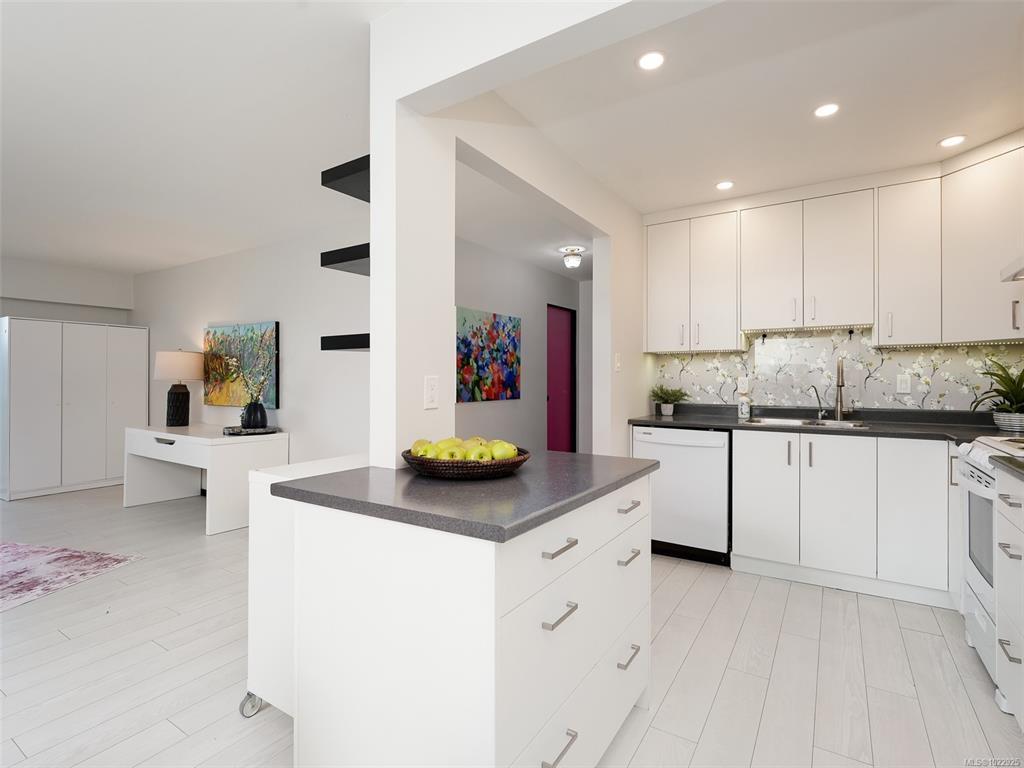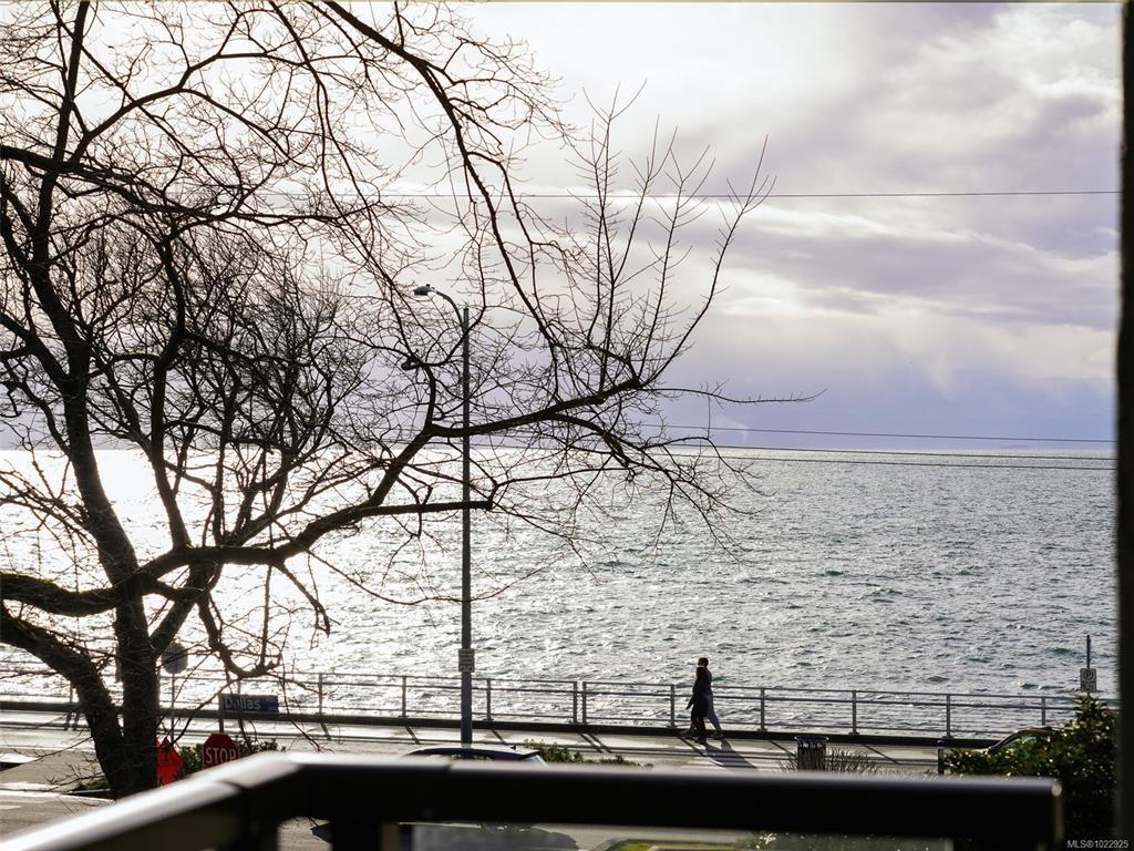 Your dream of living, walking and biking on the Dallas Rd waterfront in James Bay is here! This is an exceptional opportunity to start your day with the ocean & Breakwater just steps away. Find gorgeous partial water and mountain views from your bedroom windows & the long east facing balcony. Offering an open floor plan with 2 bedrooms and 2 bathrooms. It has been lovingly updated with a newer kitchen, bathrooms, paint, flooring, windows & sliding door which make the unit bright, airy and a pleasure to spend time in. Generously sized at 1109 sq ft you will have room for all your furniture plus entertaining. A well maintained building with parking, storage, bike storage, workshop & laundry room (cost included in strata fee). Truly an outstanding location and close to all conveniences. Walk everywhere from Fisherman’s Wharf, Beacon Hill Park to grocery stores, restaurants, coffee shops & Inner Harbour. This home offers the true Victoria lifestyle that everyone moves here for!