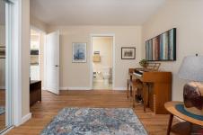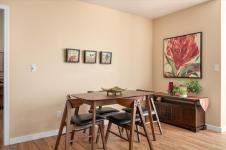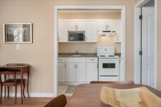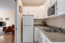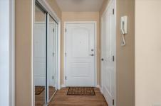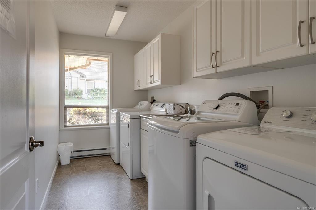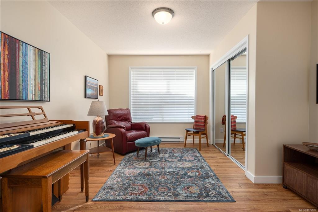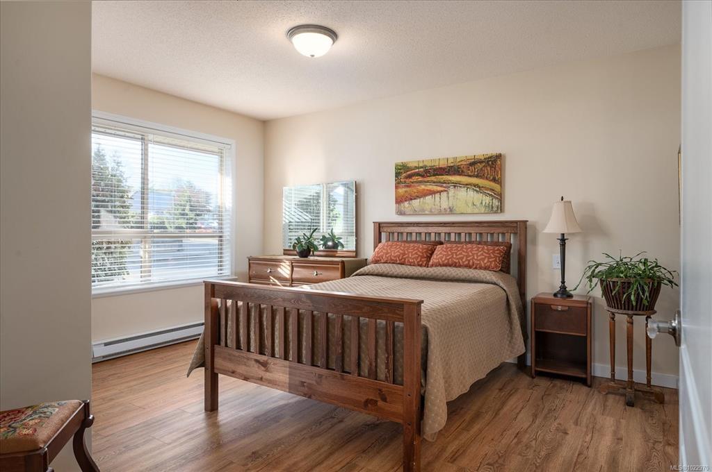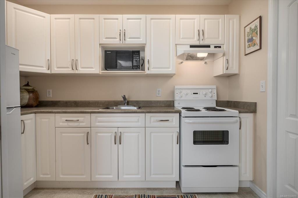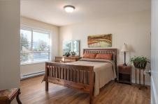 Bright and well designed south-facing patio home in the sought after Madison Court 55+ community. This rare 2 bedroom, 2 bathroom one-level residence offers open living with vaulted ceilings, large windows, and excellent natural light. Updated hot water tank, flooring, & window coverings. The layout supports aging in place with step-free living and flexible access. Enter through your own private south-facing patio or via the secured main entrance. Weekly light housekeeping & your linens laundered incl in maint fee. Laundry facilities (incl in fees) conveniently located just steps from the unit. Residents enjoy a shared community lounge with gas fireplace, space for puzzles or games, and a community garden. Well-maintained, non-smoking building. One small dog or cat permitted (see bylaws). A rare opportunity for low-maintenance living that balances independence, and optional community connection.