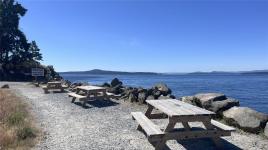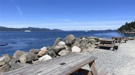 Superb location - just a 3-minute stroll to Thieves Bay Park and Marina. This sunny, south-facing .35-acre lot is flat and usable, serviced with municipal water and septic. The 2-bedroom, 2-bathroom rancher offers vaulted ceilings, a spacious kitchen/dining area with ample storage, and an open layout that’s easy to maintain—perfect for those seeking single-level living. Located close to walking trails, the disc golf park, tennis courts, and Thieves Bay Marina, which offers low moorage rates, sunset views and whale watching opportunities. Measurements are approximate; buyer to verify.