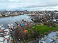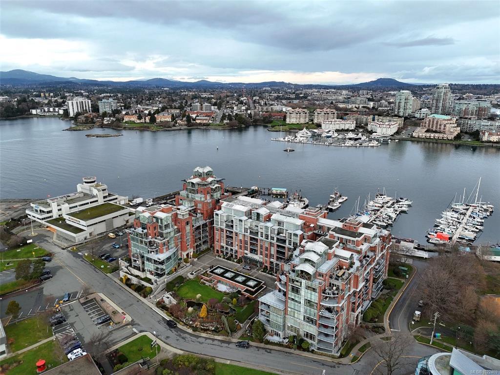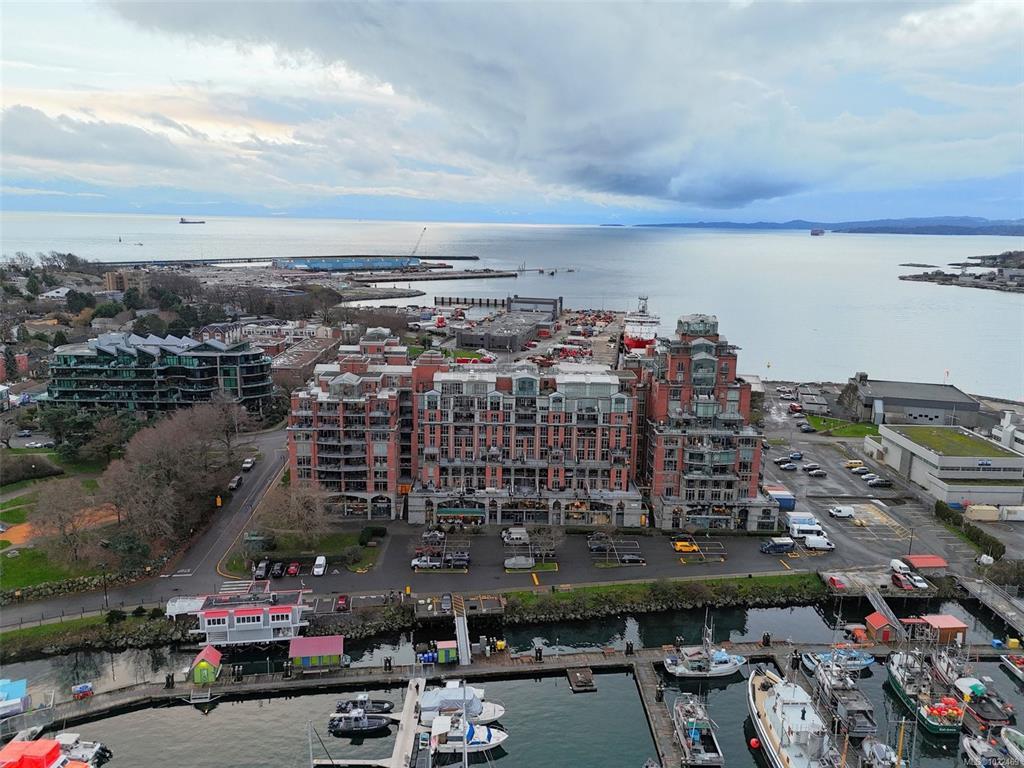 Welcome to the world class Shoal Point development. This enviable location is both and address and a lifestyle. Boasting amenities including a concierge, large pool and hot tub open all hours, full gym, workshop, bike storage and car wash - and more. It offers an established, welcoming community with regular gatherings. Ideally located beside Fisherman's Wharf with easy access to downtown amenities, and steps from scenic Dallas Road, all while offering the residential tranquility of James Bay. This pet friendly, south-west facing unit features floor to ceiling windows in the living room and primary bedroom, allowing for spectacular natural light. Located on the quiet side of the building with water and mountain views to enjoy while relaxing in front of your cozy gas fireplace. Imagine summer evenings on your spacious deck, enjoying unparalleled sunset views, and a front row seat for fun annual events like the TC10K. In suite laundry, storage locker and secure parking included.