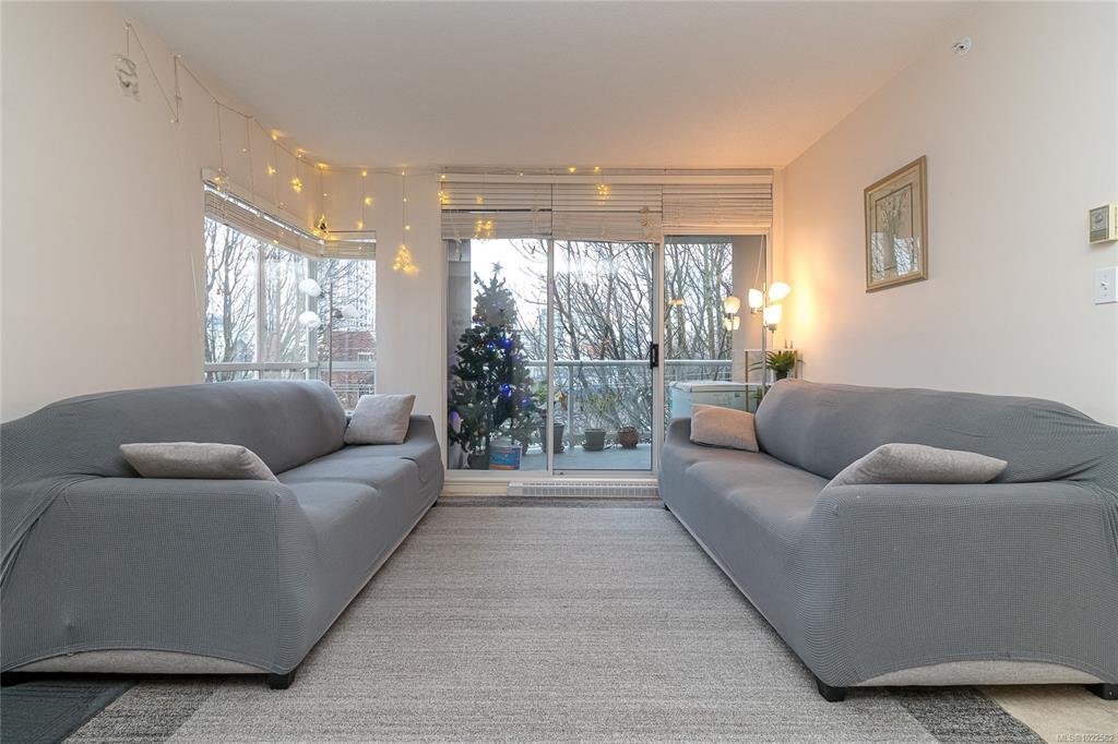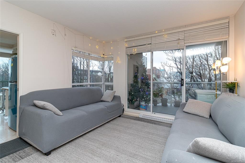 Prime Downtown Location at Regents Park! With a walk/bike score of 98 you have the best of Victoria steps away, great restaurants, local shopping &major grocery, theatre, the inner harbour, beaches & parks, all transportation & only 12 mins to UVIC. Set on a huge city lot this steel &concrete building is surrounded with mature landscaping & peacefully set outside of the entertainment district. A very spacious 948sq ft 2bed 2 bath SW facing home on the 5th floor has fantastic light & looks out to the gorgeous tree canopy on Vancouver St. Great layout with living room opening to large 100sq ft balcony, kitchen dining in a bay window, 1yr old w/d & fridge & newer range, primary suite w/ample closets & full ensuite, roomy 2nd bedroom, insuite laundry& pantry. Building amenities: secure underground parking, storage locker, bike storage & gym. A truly great investment opportunity for the future at an unbeatable price. A treat to call home, vacation home, or enjoy excellent rental income.