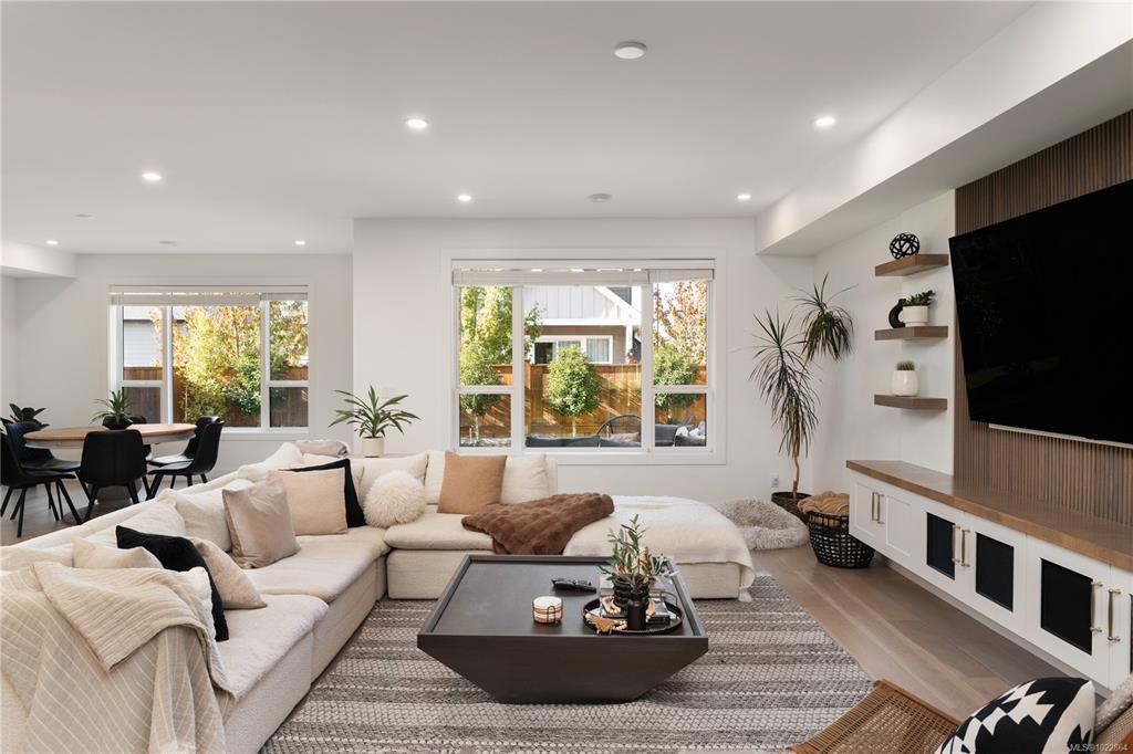 Enter this beautiful 2022 built home that feels custom at every turn. Spanning over 3,000 sq.ft. with a legal 1-bed suite above the garage, this home offers space and quality throughout. The grand entry with 18-ft ceilings leads to an open-concept main floor featuring a stunning kitchen with Fisher & Paykel appliances, oversized island, walk-in pantry, and dining area overlooking the tidy, landscaped backyard. Enjoy a covered patio perfect for year-round entertaining. Built-ins and wood accents add warmth and style. Upstairs offers a flexible loft, 3 bedrooms, and spacious laundry. The primary suite features a spa-inspired ensuite and walk-in closet. Complete with a 2-car garage, ample parking, heat pump, and located steps to Olympic View Golf Course, a new elementary school, and the seaside amenities of Royal Bay.