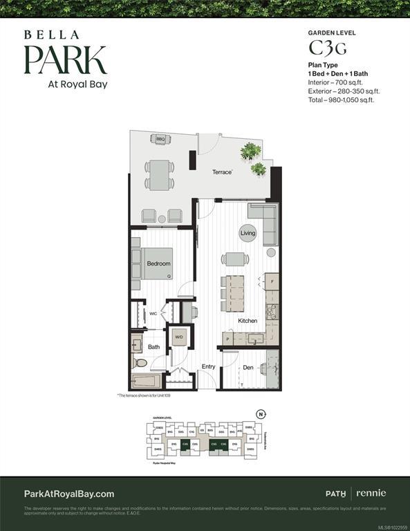 Discover the perfect blend of indoor comfort and outdoor living with this stunning garden-level home at Bella Park in Royal Bay! Flooded with natural light through large windows and enhanced by over-height ceilings, the home feels bright, open, and inviting. The contemporary kitchen features Silestone countertops, modern stainless steel appliances, and ample storage, making it a joy for cooking and entertaining. The versatile den can serve as a home office, creative studio, or additional living area ~adaptable to your lifestyle. Enjoy an exceptional range of amenities, including a 3,700 sq ft clubhouse with lounge, full kitchen, fire pit, media centre, fitness centre, co-working space, wellness spa with hot tub, sauna, cold plunge, and two guest suites for visiting friends and family, as well as common area kayak storage, all just steps from the beach, parks, and local conveniences. Bella Park combines comfort with an unbeatable location. Price+GST