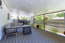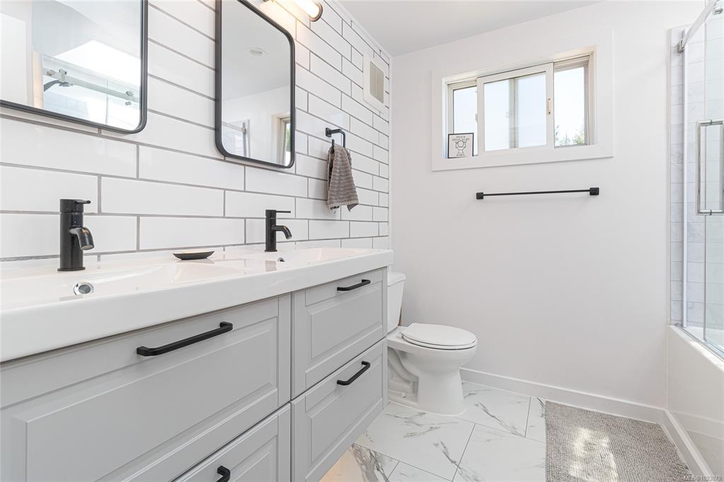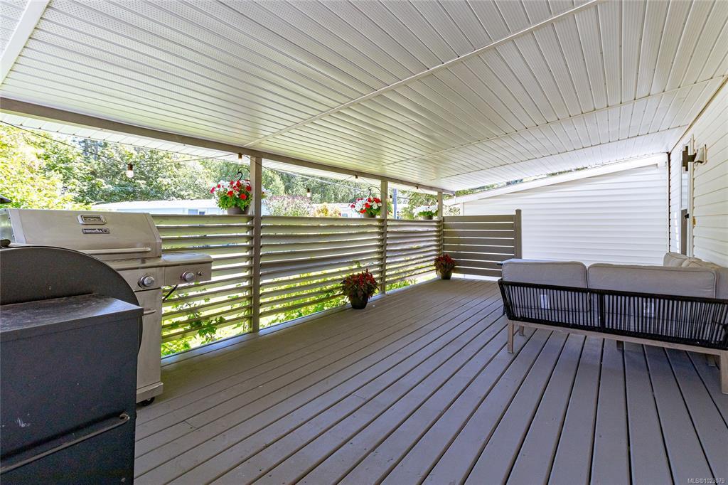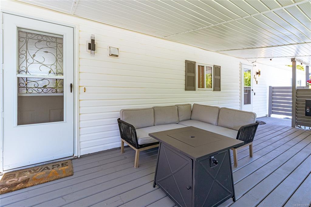 Extensively updated & move-in ready, this beautifully renovated 2BR, 1BA home is located in the desirable all-ages Cedar Ridge Estates. Step inside to a bright, modern interior featuring a fully updated kitchen with new cabinetry, under-cabinet lighting & stainless steel appliances, along with vinyl plank flooring, fresh paint, new lighting & custom built-in bookcases throughout. The updated bathroom includes a new tub, shower surround, modern vanity with kick-space lighting & a high-efficiency 150 CFM fan. Additional upgrades include a new hot water tank, updated plumbing & electrical (no poly-B), new panel, storm doors, washer & dryer with cabinetry & a wired storage shed. Outside, enjoy a freshly painted covered porch, new fencing & a private outdoor space ideal for relaxing or entertaining. Close to Saanichton Village, parks, shopping & Sidney in a pet-friendly, no age restriction community. Turnkey and a must-see!