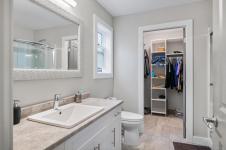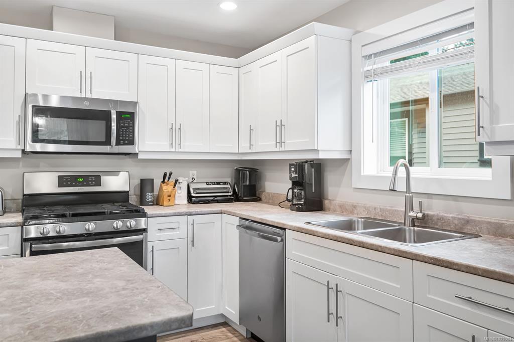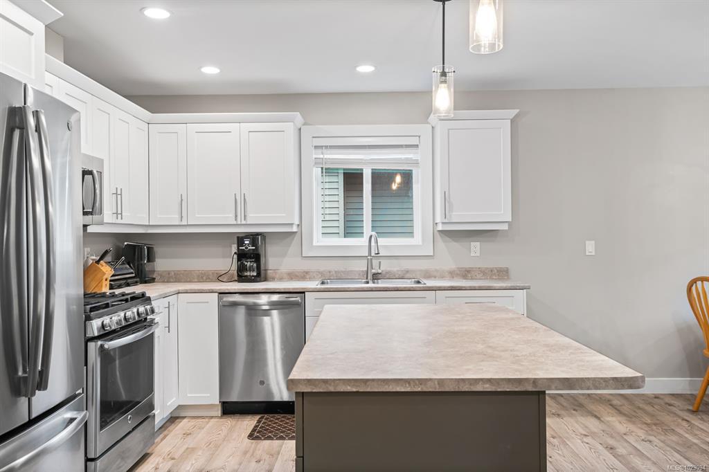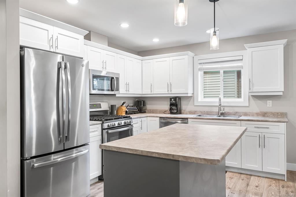Step into the modern comforts of this inviting newer home. Built in 2019 this home has a main living area with three bedrooms and three bathrooms, as well as an additional separate legal suite featuring one bedroom and one bathroom. Located close to hiking trails, it beckons nature enthusiasts to explore the scenic surroundings. Inside, large windows bathe the interior in natural light, creating a bright and welcoming ambiance. The primary bedroom boasts a spacious walk-in closet and 3 piece ensuite. Enjoy outdoor living in the fully fenced yard, perfect for gatherings or relaxation. Modern amenities include a natural gas furnace and heat pump, ensuring efficiency and comfort year-round. The spacious open living area welcomes you with its cozy ambiance, featuring a stylish electric fireplace. while a separate 1-bedroom suite with its own electric heat, hydro meter, and parking space provides flexibility for guests or rental income.