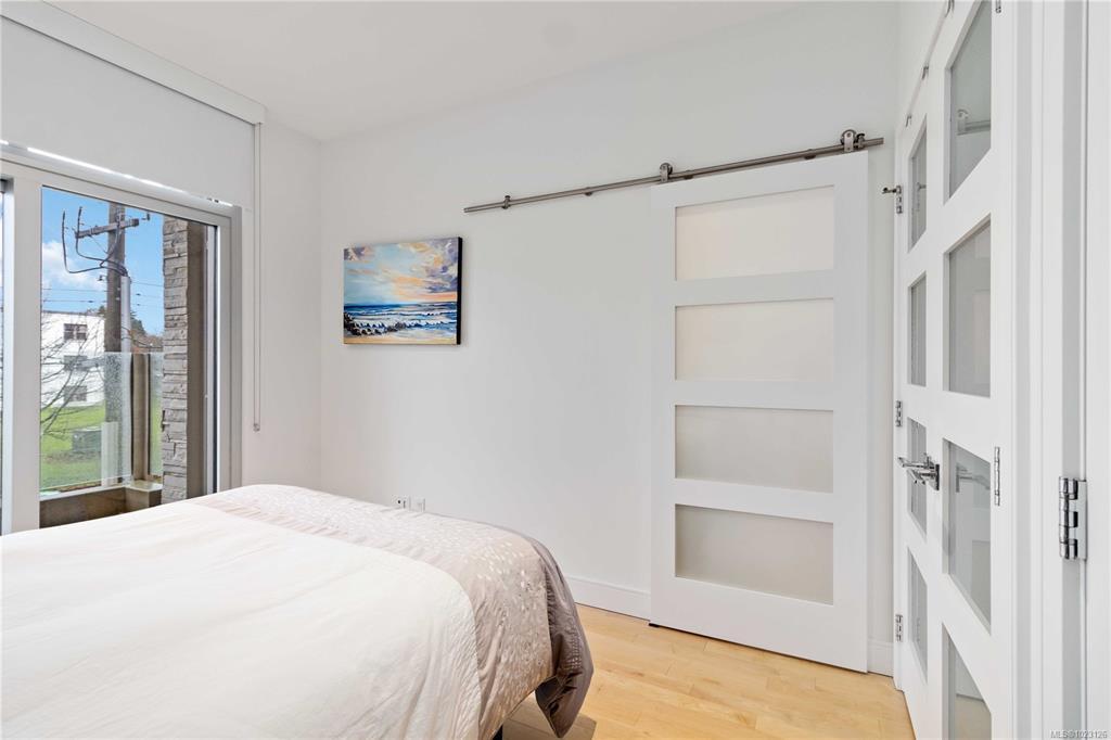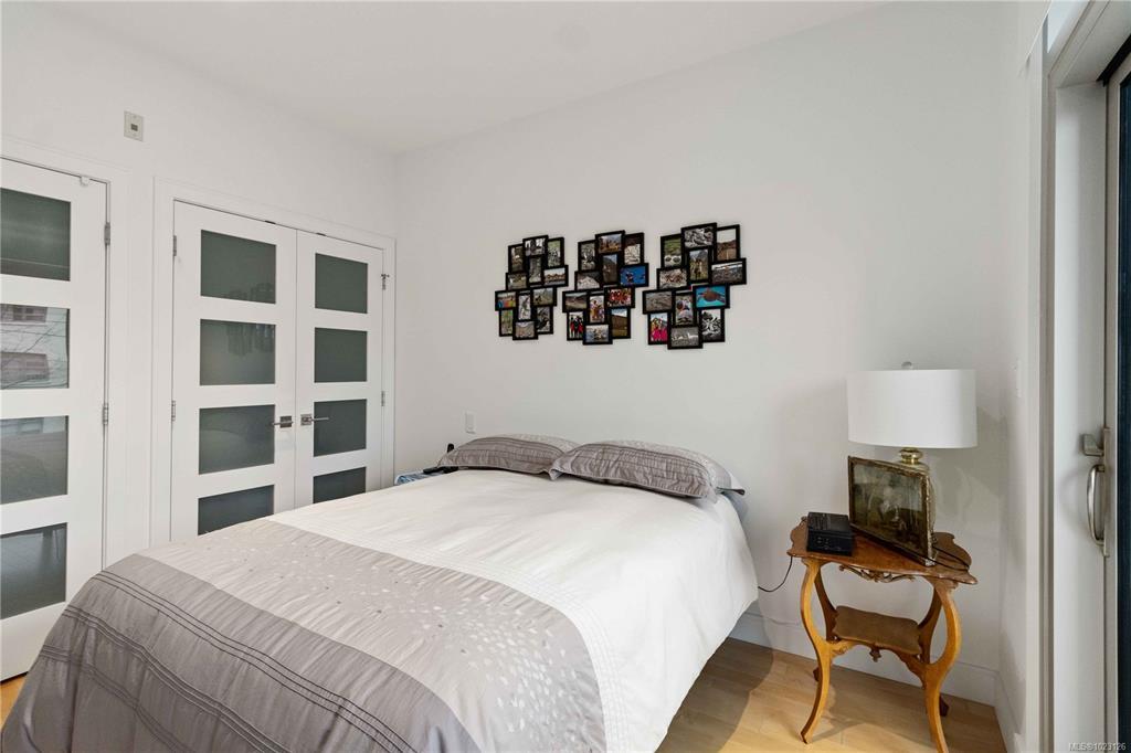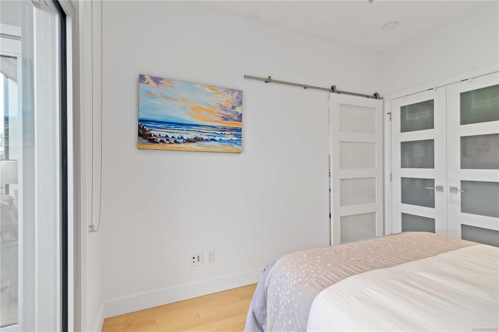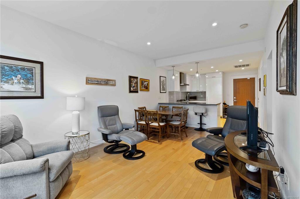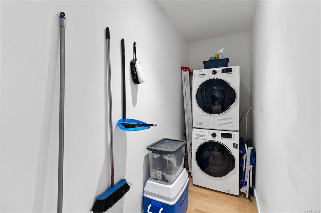 Welcome to Westbay Quay, a modern steel & concrete building in the heart of Esquimalt’s vibrant waterfront community. This bright & thoughtfully designed 1 bdrm condo offers an efficient open-concept layout w/hardwood floors, oversized windows,& seamless flow between living, dining,& kitchen areas. The contemporary kitchen is beautifully finished w/quartz countertops, sleek cabinetry, & a premium Fisher Paykel/Blomberg appliance package including gas cooktop, built-in oven, integrated refrigerator & dishwasher, ideal for both everyday living & entertaining. The bedroom offers generous closet space & direct access to a private deck, while the modern 4-piece bathroom features clean lines & quality finishes. Extra's include in-suite laundry, A/C, secure underground parking & storage locker, bike/kayak storage & professionally managed strata. This immaculate home offers an exceptional blend of lifestyle, quality & convenience.