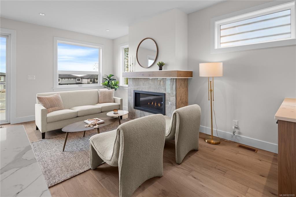 Luxury duplex living with no strata fee! CODA Homes presents this BuiltGreen Platinum rated Bear Mountain home with a 1 bedroom in-law suite. The main floor offers open-concept living, including a gorgeous kitchen with a large island, walk-in pantry, &Â Bosch appliances. The dining room opens onto the sunny balcony, and the comfortable living room offers a gas fireplace & bar area. Upstairs, you'll enjoy 3 large bedrooms, including a primary with a walk-in closet, & breathtaking ensuite. The walk-out lower level includes a family room with patio and fenced yard, plus a private one bedroom in-law suite with separate entrance, laundry, and quartz counters. Features include engineered hardwood floors, quartz counters, a high-efficiency ducted heat pump, a fenced & landscaped yard, & no strata fees! Enjoy easy access to the highway, just 5 mins from Costco, shops, restaurants & golf.