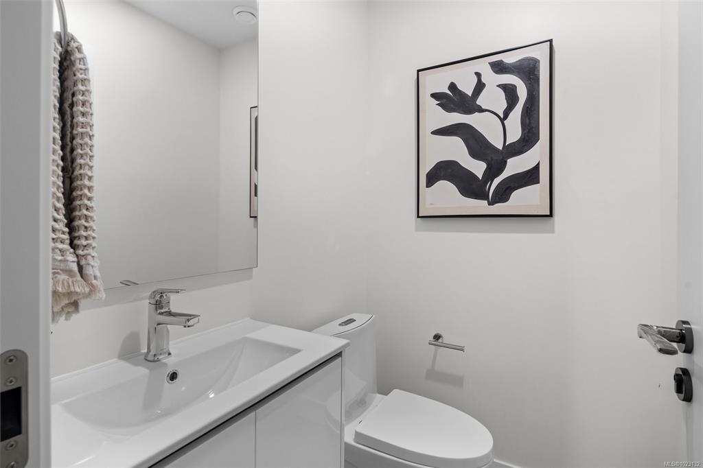 NO property transfer tax and developer will PAY THE 1ST YEARS STRATA FEES. This stunning 2 bedroom and Den / 2 bathroom contemporary townhome in the heart of Langford. These modern homes feature generous room proportions and thoughtful layouts. Many features just not found elsewhere such as huge triple glazed windows with aluminum frames and European tilt / turn hardware, steel framing and high efficiency spray foam insulation. You will also love the double garage, high ceilings and a 3 zone heat pump for year round comfort - these homes are a step above. The location is incredible with an 83 Walkscore and 90 Bikescore! Shops, West Shore University, services, all levels of schools, transit, parks and lakes, Jordie Lunn bike park and more. Book your showing today!