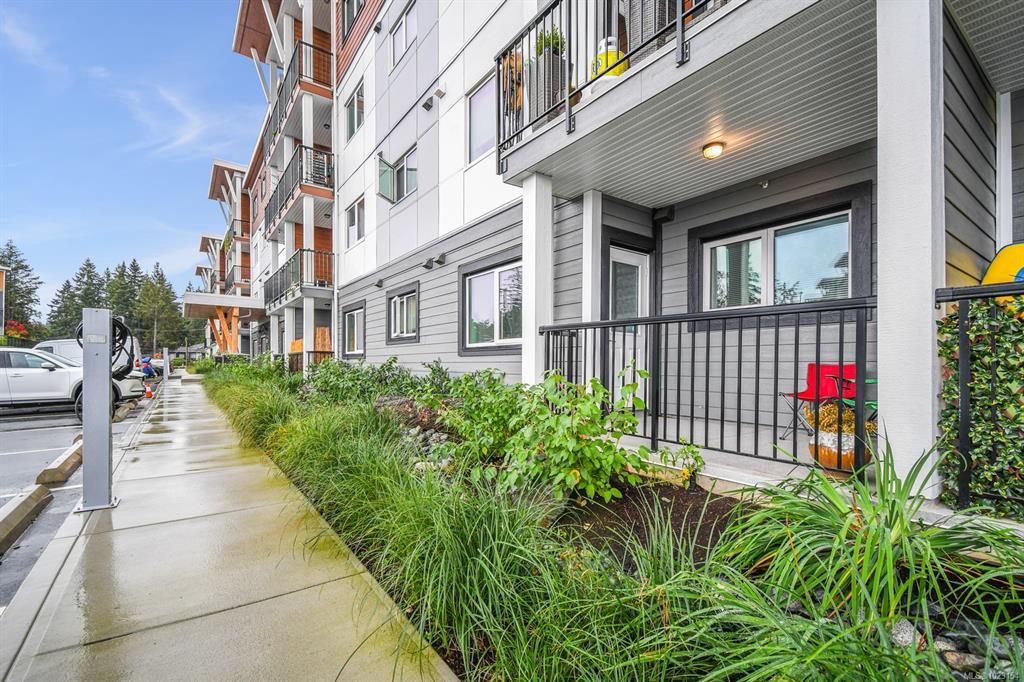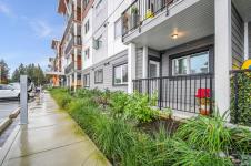 Seller Financing possible! Cedar Ridge is North Nanaimo’s newest condo development and offers an amazing amenity/activity building for owners to use that includes a kitchen area, sitting and lounge areas, gym and yoga studio all of which are accessible by the owners or tenants. Offered for sale is this modern 1 bedroom, 1 bathroom condo with approx. 666 sq ft of living space. This unit is very bright and spacious with an open concept kitchen and large island open to the living room. Tastefully designed with 9 ft ceilings, quartz counter tops, modern cabinetry and Stainless Steel appliances gives this unit a great feel. Off the living room is access to the patio to enjoy the outdoor space. The convenient in suite laundry is located in a good sized storage room near the front door. This is a ground floor condo with easy access to & from the parking lot. The complex has designated parking and low strata fees. Measurements are approximate and all data should be verified if important.