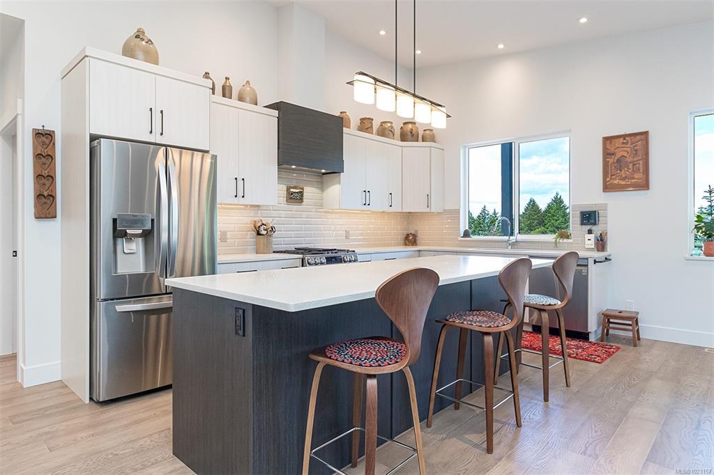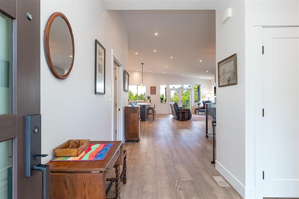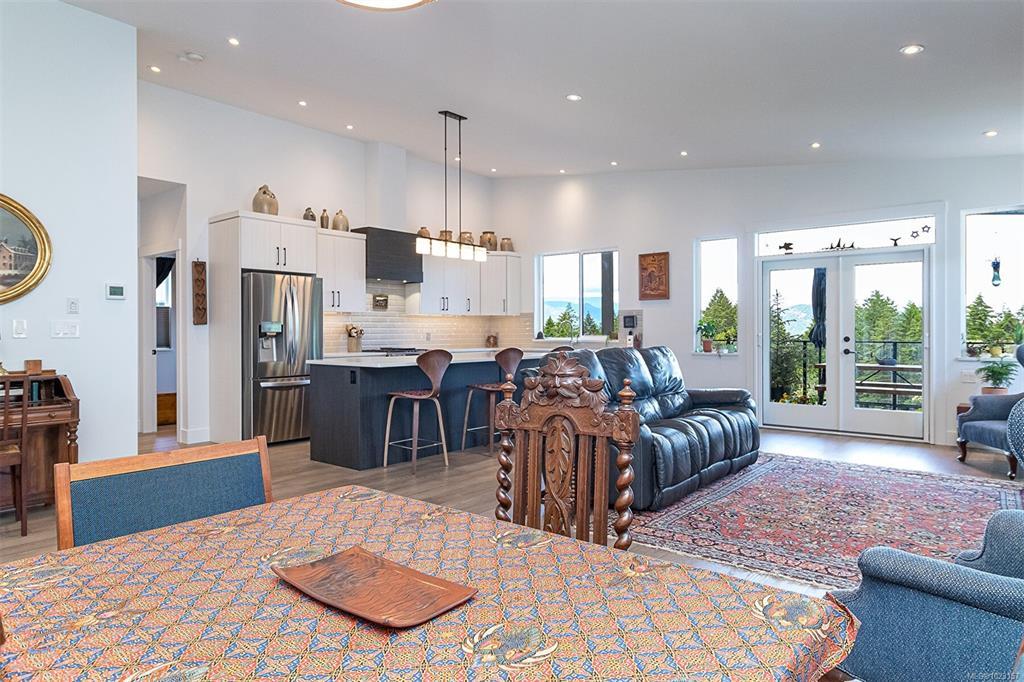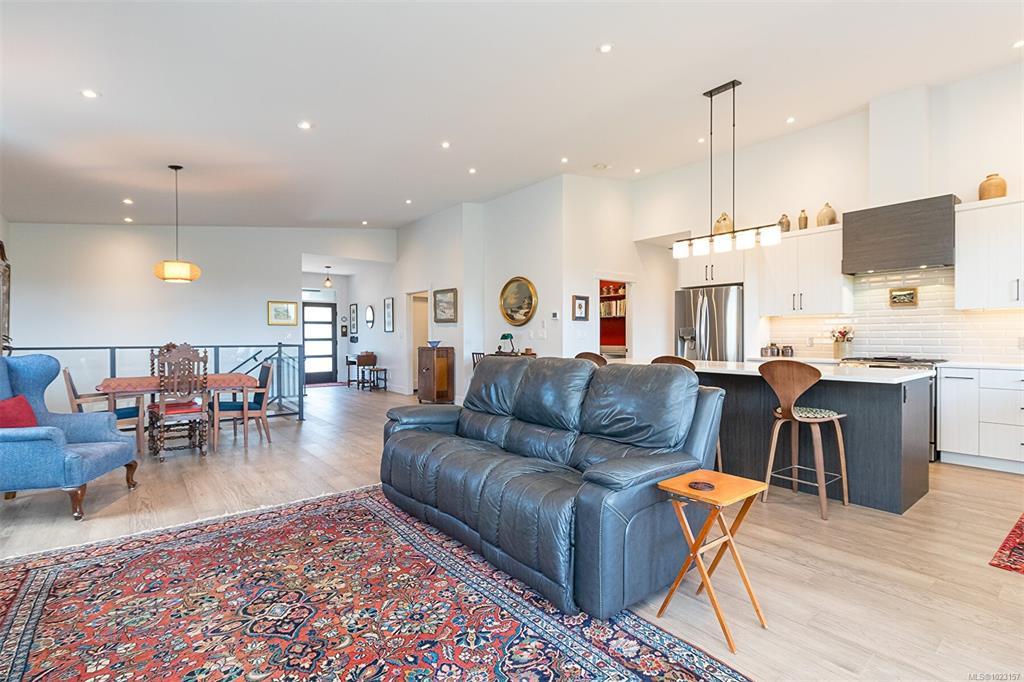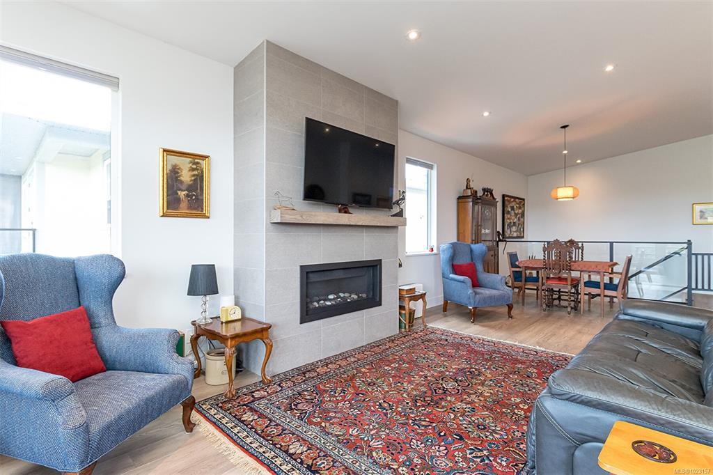 Welcome to Maple Bay in the Cowichan Valley. 6257 Highwood Drive is a 2022 custom built home by Elmworth Construction. This contemporary home is built with energy efficiency and minimal resource usage. The newly installed solar panels generate enough electricity to cover all but the service delivery costs of the home. The gardens are native, drought tolerant plants with drip irrigation. The backyard leads out to Garry Oak meadows & accessible green space. Main level living includes a bright, spacious kitchen with custom cabinetry & quartz countertops, gas fireplace in living area & double patio doors leading to all-seasons covered deck. The large primary bedroom is complemented with double sinks, custom tile shower, luxurious soaker tub & walk-in closet. The lower level offers a large media room, full bathroom, 2 more bedrooms and family room. The bonus is an additional 1 bedroom suite with private entrance. The oversized double garage has room for 2 vehicles, EV Charging & storage.