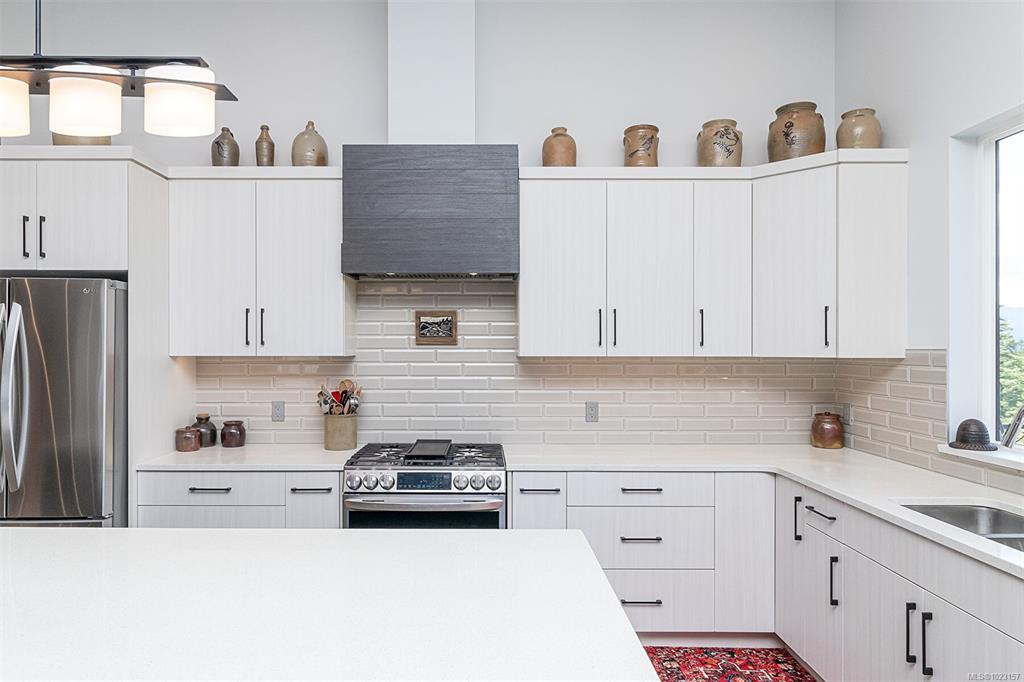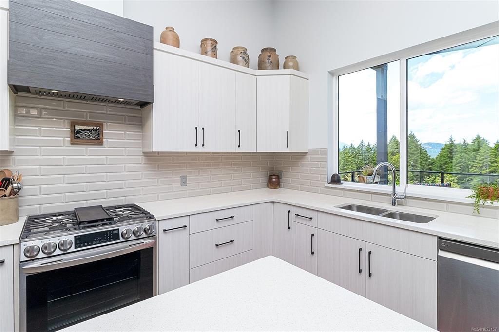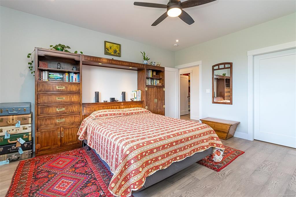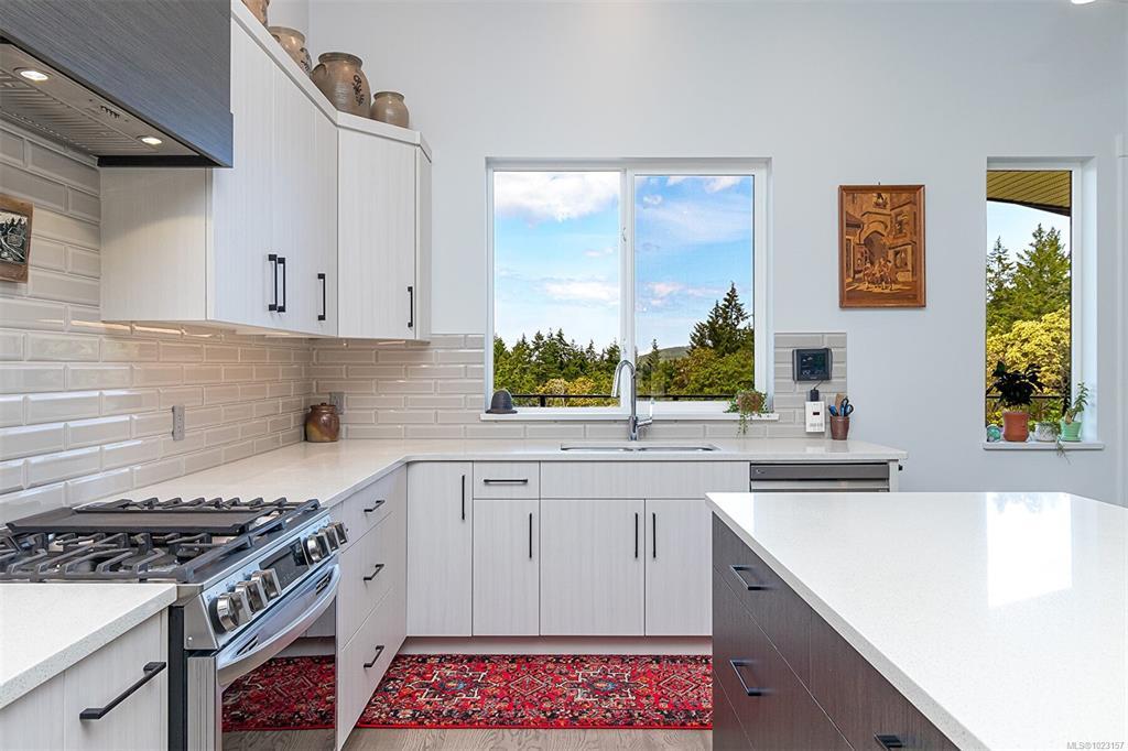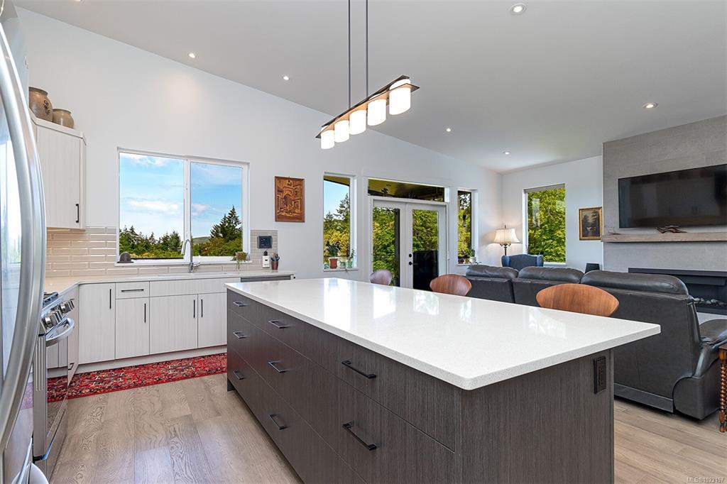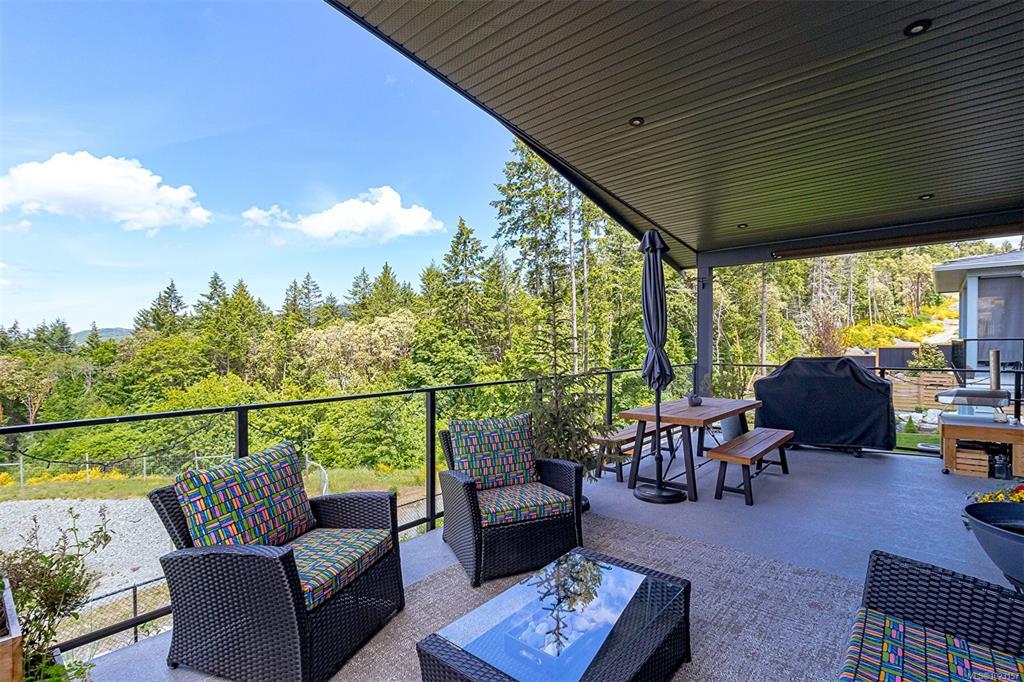 Welcome to Maple Bay in the Cowichan Valley. 6257 Highwood Drive is a 2022 custom built home by Elmworth Construction. This contemporary home is built with energy efficiency and minimal resource usage. The newly installed solar panels generate enough electricity to cover all but the service delivery costs of the home. The gardens are native, drought tolerant plants with drip irrigation. The backyard leads out to Garry Oak meadows & accessible green space. Main level living includes a bright, spacious kitchen with custom cabinetry & quartz countertops, gas fireplace in living area & double patio doors leading to all-seasons covered deck. The large primary bedroom is complemented with double sinks, custom tile shower, luxurious soaker tub & walk-in closet. The lower level offers a large media room, full bathroom, 2 more bedrooms and family room. The bonus is an additional 1 bedroom suite with private entrance. The oversized double garage has room for 2 vehicles, EV Charging & storage.