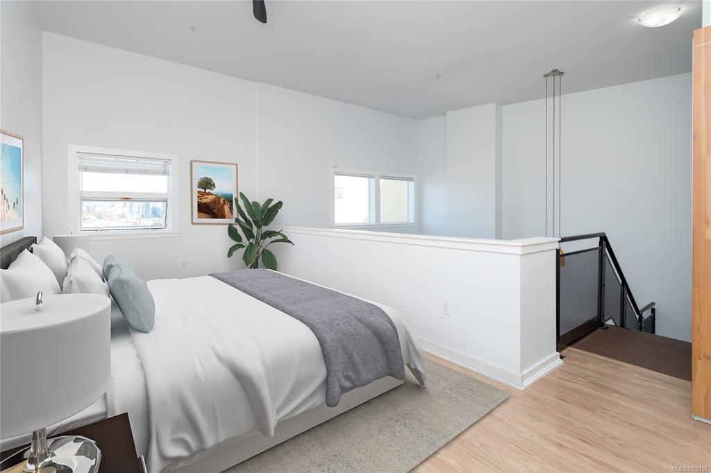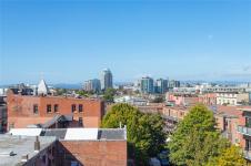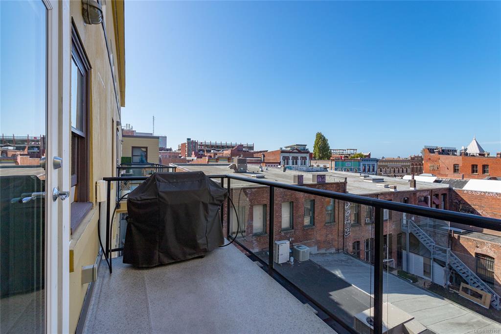 Where downtown vibes meet sophisticated living & heritage charm meets modern convenience! Live, Work, Play at "THE VOGUE” This 2006 heritage conversion set in the heart of Victoria’s historic Old Town truly has it all.2 bd, 2 bth, 2 level penthouse loft creates one-of-a-kind living experience at this historic, charming Address.Main living is open concept with impressive 21 ft ceilings, lovely living space with cozy gas F/P & access to spacious deck with gas BBQ hook up & views of the Lo Jo store fronts & Johnson St Bridge, perfect for entertaining!The stylish kit features lots of cupboard space, stone c/tops, S/S appl, gas range & secret pantry! Laundry on this level with 4 pce bth, cheater to 2nd bd that can be open & be part of the L/R or install privacy doors.The upper level offers primary bd with 3 pce bth & views over Old Victoria & Lo Jo store fronts.Located with unbeatable access to restaurants, Chinatown, Fan Tan Alley, Market Square, shopping, theatre! Car-less lifetyle-wow!