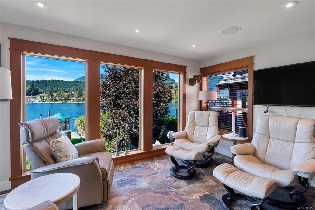 Welcome to a rare opportunity to own an extraordinary waterfront home on Cowichan Lake. Nestled on Point Ideal Drive—an exclusive enclave of only nine properties—this custom-built 2005 residence offers 3,241 sq. ft. of timeless West Coast design on an 8,815 sq. ft. lot with private dock. Inside, soaring 19’ ceilings, a dramatic stone fireplace, oak floors, and expansive windows frame breathtaking lake and mountain views. The gourmet kitchen features maple shaker cabinetry, granite counters, walk-through pantry, and large island opening to the dining room and sunroom. Step onto the 300+ sq. ft. deck, perfect for entertaining or enjoying morning coffee overlooking the water. The luxurious primary suite boasts 15’ ceilings, a private balcony, spa-inspired ensuite, and panoramic vistas. A wine cellar, games room, and theatre complete the lower level. Meticulously maintained and thoughtfully designed, this home offers unparalleled lakefront living where memories are made for generations.