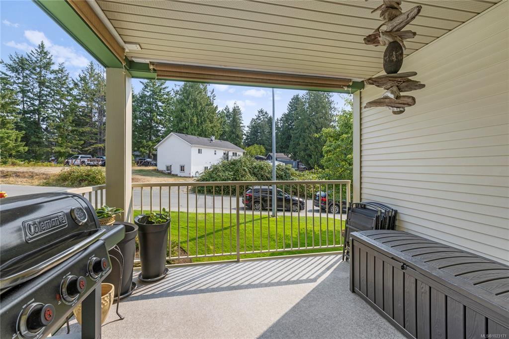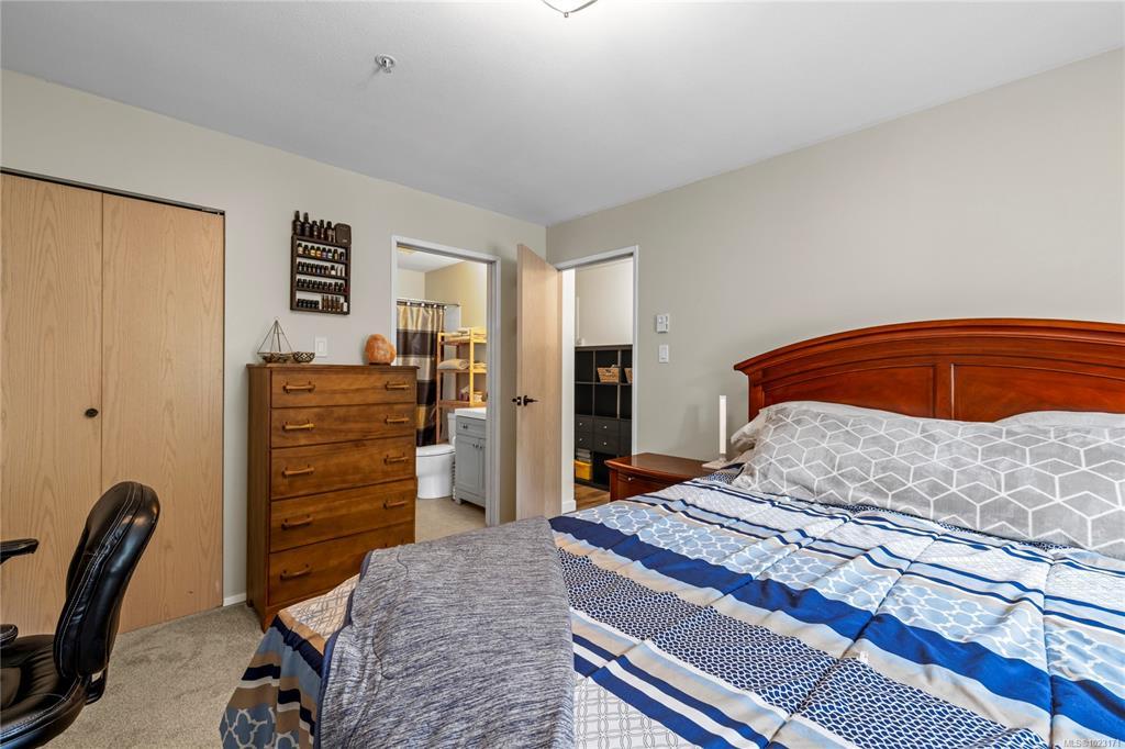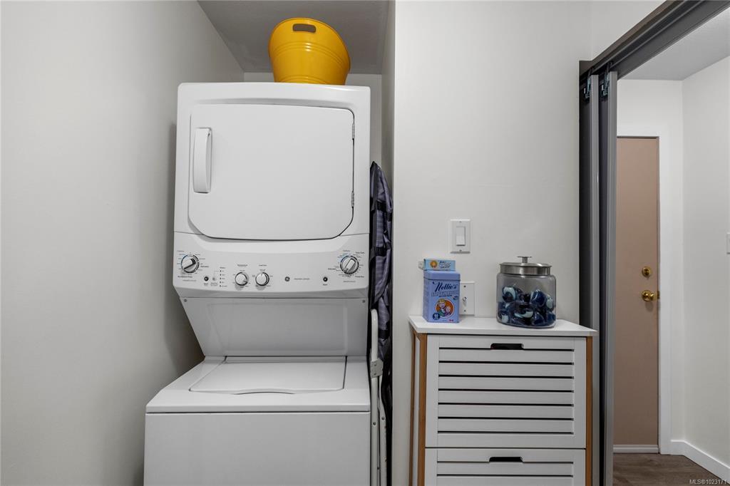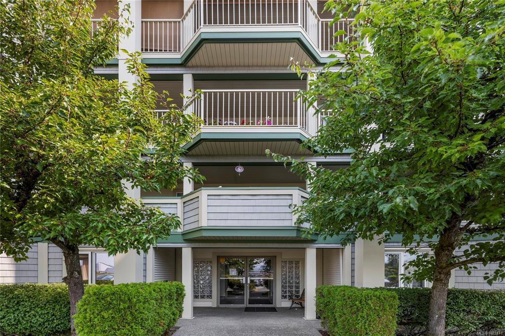 Welcome to this two-bedroom condo in the sought-after Rutherford Pointe complex. Enjoy a prime North Nanaimo location with a walking path to Nanaimo North Town Centre and nearby shops and services. Inside, the stylish kitchen, newer flooring, and spacious living and dining areas create a comfortable setting. A covered deck provides space to relax outdoors. The home features two bedrooms, including a primary with walk-in closet and four-piece ensuite, plus a second four-piece bathroom. An in-unit laundry room with storage adds extra convenience. One dog or cat up to 30 lbs and 16” tall is allowed. The strata fee includes hot water. For more information on this property see the 3D tour, video, and floor plan. All data and measurements are approximate and must be verified if fundamental.