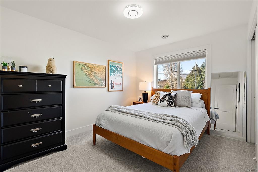 Welcome to a near-new residence positioned on its own private road in one of Saanich's most sought-after central & family-friendly neighbourhoods. This thoughtfully designed home offers elegant open-concept living w/ 3 spacious beds on the upper lvl, complemented by a self-contained 1bed suite above the garage w/ a private entrance ideal for added income potential. High-end fixtures & finishes are showcased throughout, including a chef-inspired kitchen w/ premium appliances, eat-in island, quartz countertops w/ backsplash, & walk-in pantry. The luxurious primary suite is paired w/ a generous walk-in closet, 5pce ensuite w/ soaker tub & refined attention to detail at every turn. Enjoy a fully fenced yard designed for both relaxation & entertaining. Located within walking distance to Copley Park & just mins from Royal Oak Centre, Commonwealth, & Broadmead Village. Complete with the balance of the New Home Warranty, this home offers a blend of modern luxury, functionality & peace of mind.