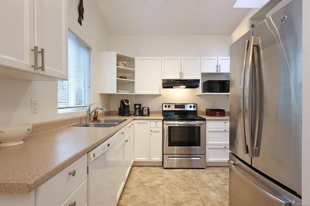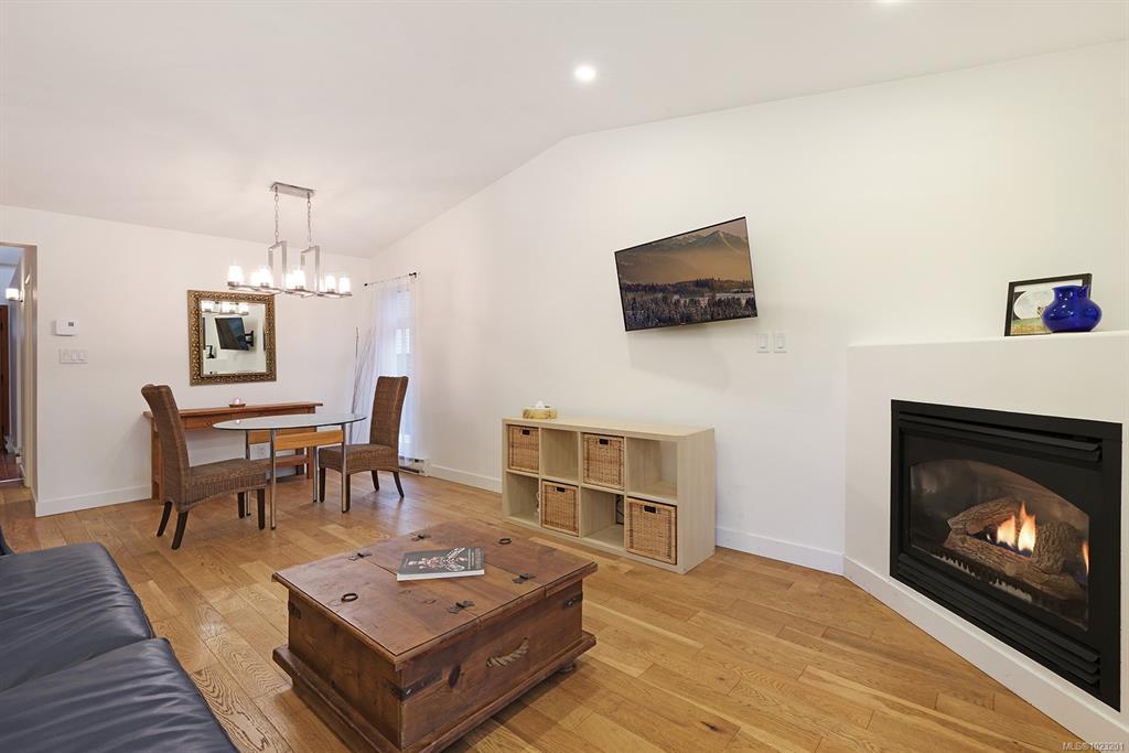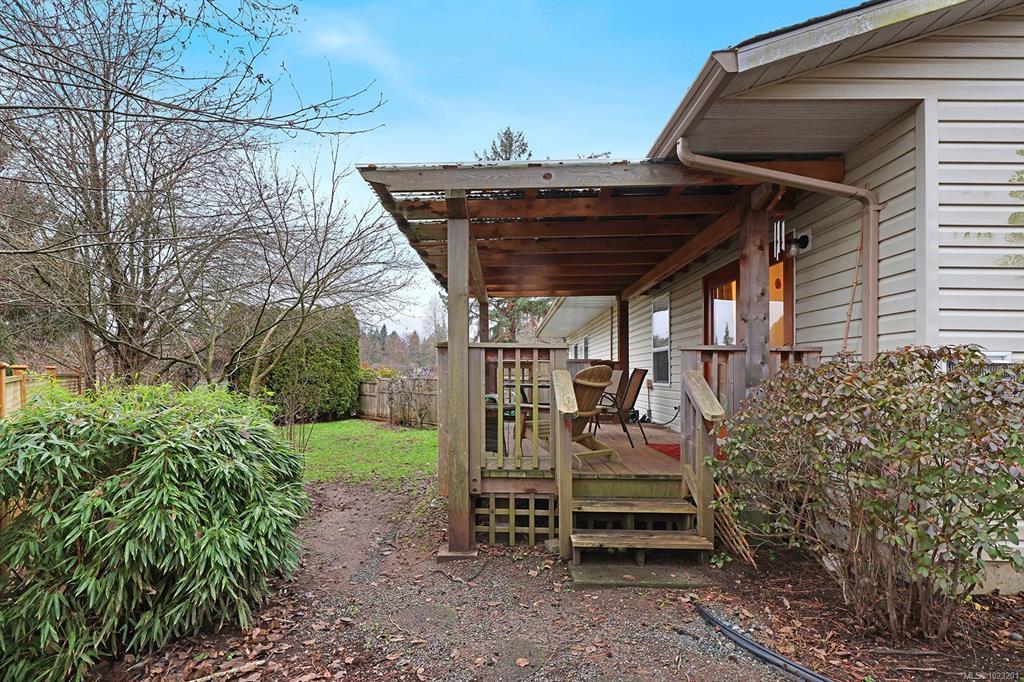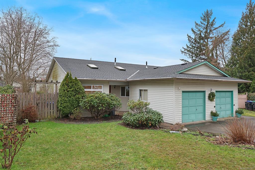Tucked away in a quiet cul-de-sac in East Courtenay, this single-level half duplex is an ideal opportunity for first-time buyers or those wanting to add their own finishing touches. The home features vaulted ceilings, two bedrooms plus a versatile office/den, and two bathrooms. The bright kitchen with a spacious eating nook opens to the living area, highlighted by a cozy natural gas fireplace. A single garage offers extra storage, while the private, fully fenced backyard with irrigation, sunny garden beds, and a deck is perfect for relaxing or gardening. Conveniently located near schools, shopping, parks, North Island College, the hospital, and CFB Comox, this home combines comfort, practicality, and a well-established neighbourhood lifestyle.