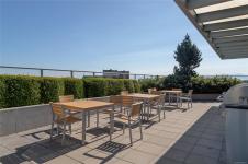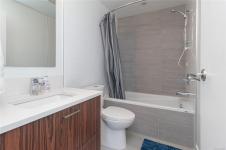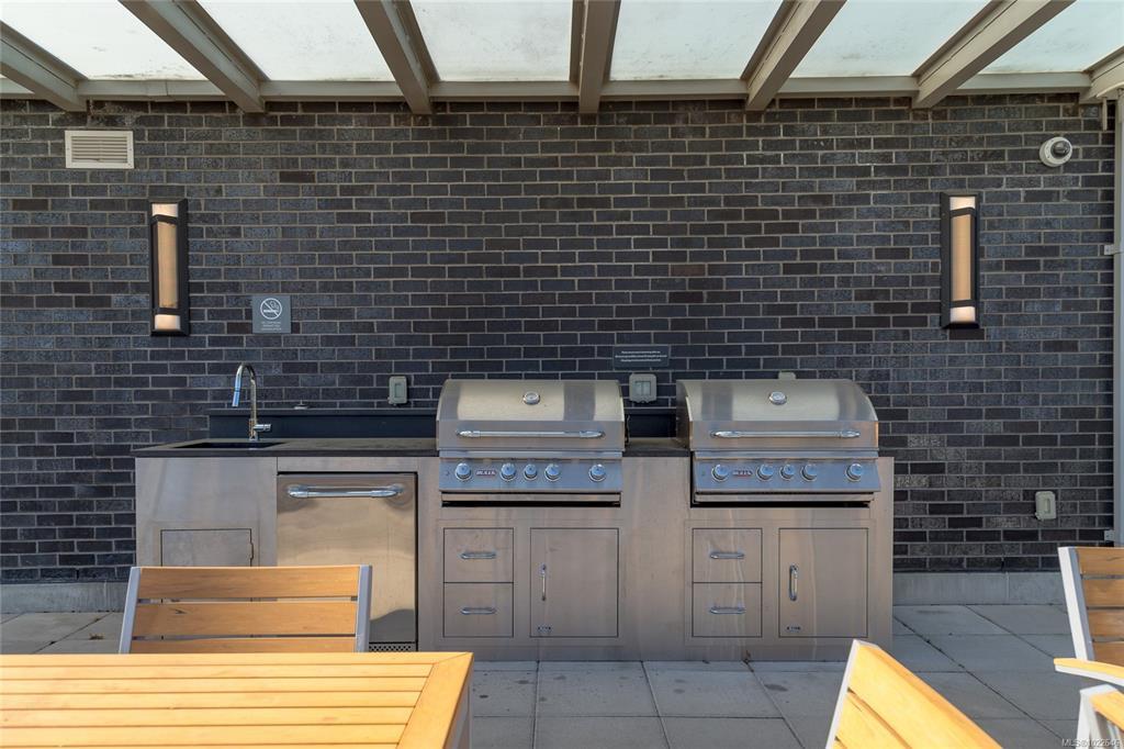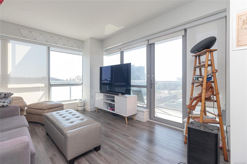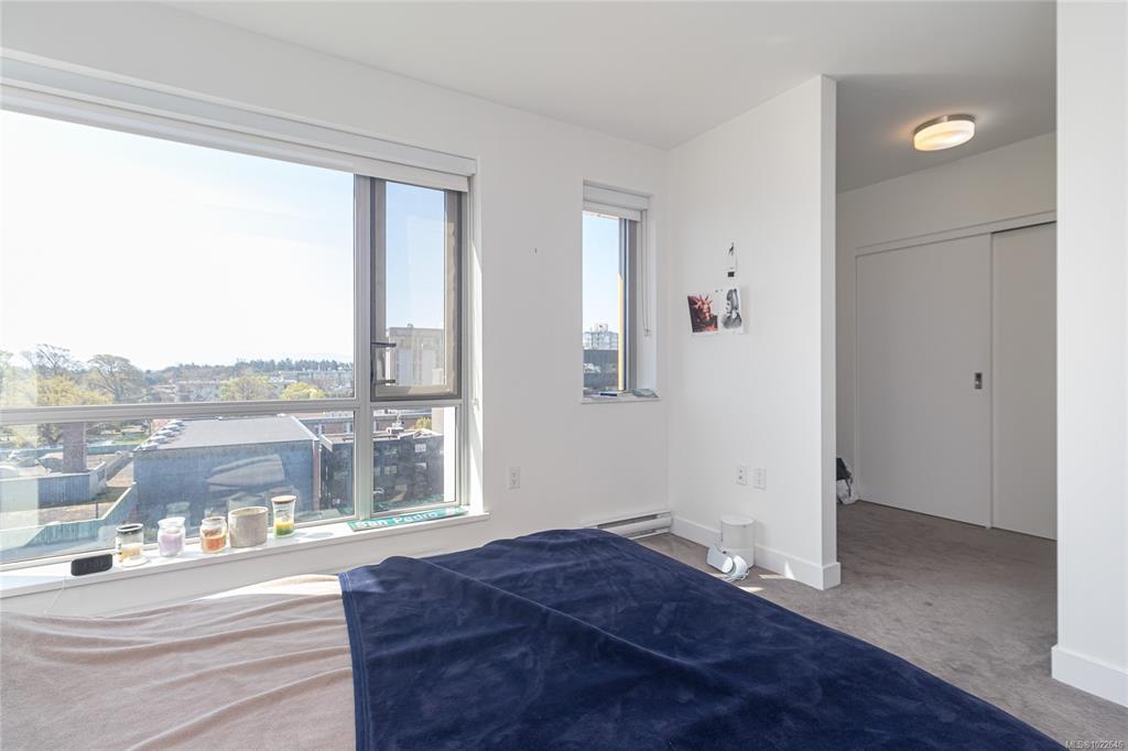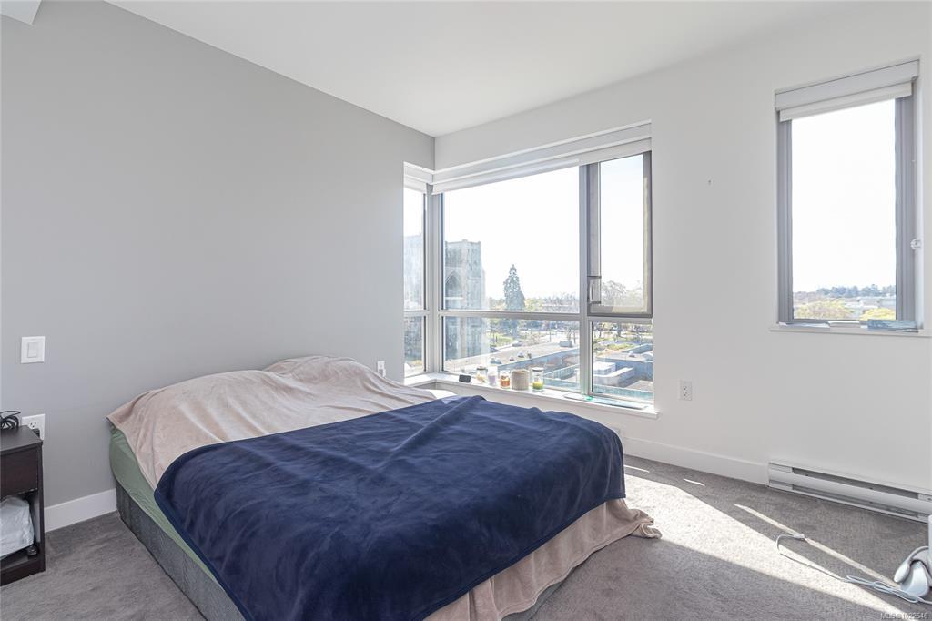 Experience refined urban living at Escher in this stunning corner residence offering over 1,000 sq. ft. of thoughtfully designed space. The bright two-bedroom, two-bathroom layout is enhanced by floor-to-ceiling windows and a desirable southeast exposure, bathing the home in natural light. The gourmet kitchen features premium appliances and sleek, modern finishes, while the primary suite is a true retreat with a spa-inspired ensuite complete with a soaker tub and glass-enclosed shower. Additional features include gleaming floors, ample in-suite storage, a built-in tech workspace, in-suite laundry, and a generous wraparound balcony perfect for entertaining. Tucked away in a quiet downtown enclave yet moments from Cook Street Village, shops, cafés, groceries, and the waterfront. Secure underground parking, storage locker and an exceptional rooftop terrace with lounge, kitchen, BBQ, and sweeping panoramic views complete this impressive offering.