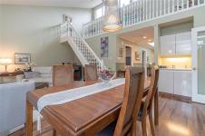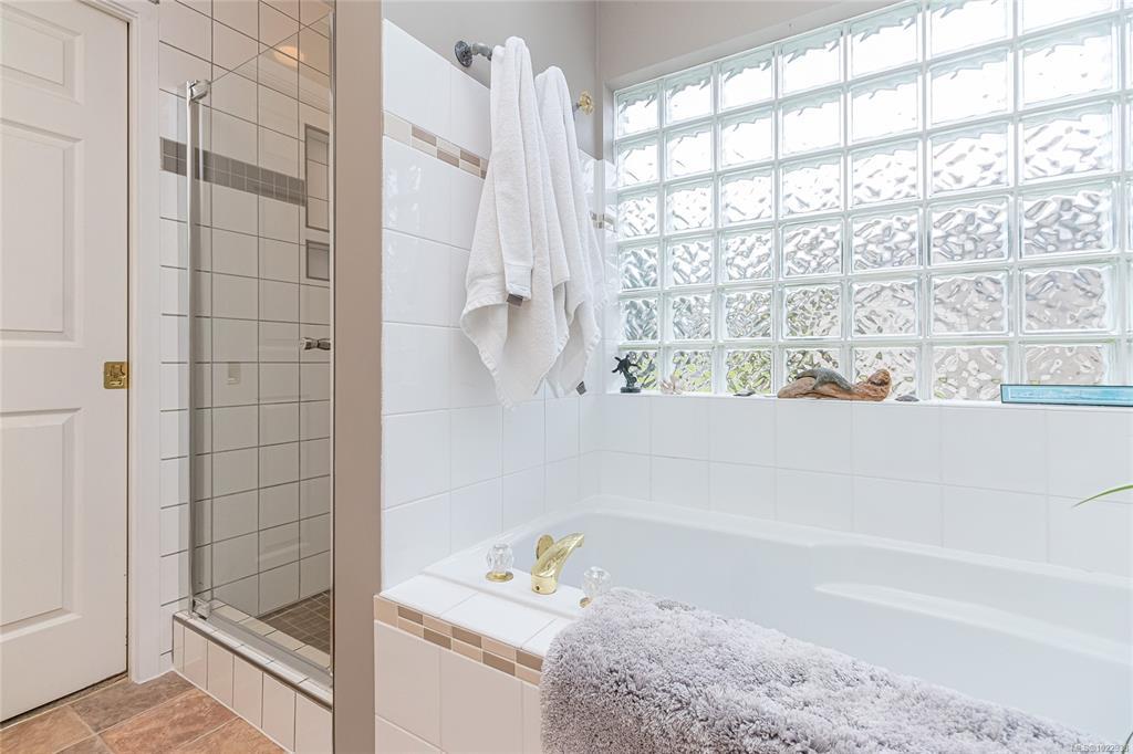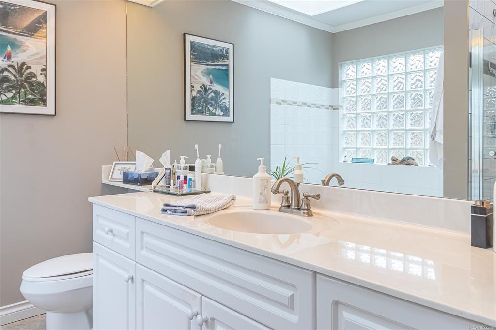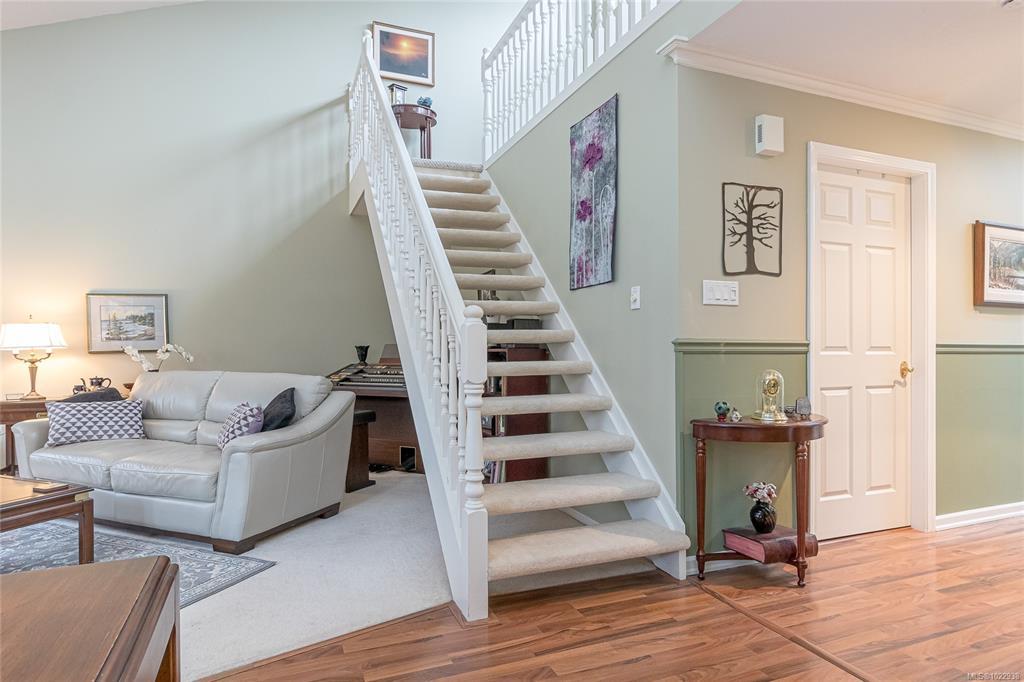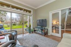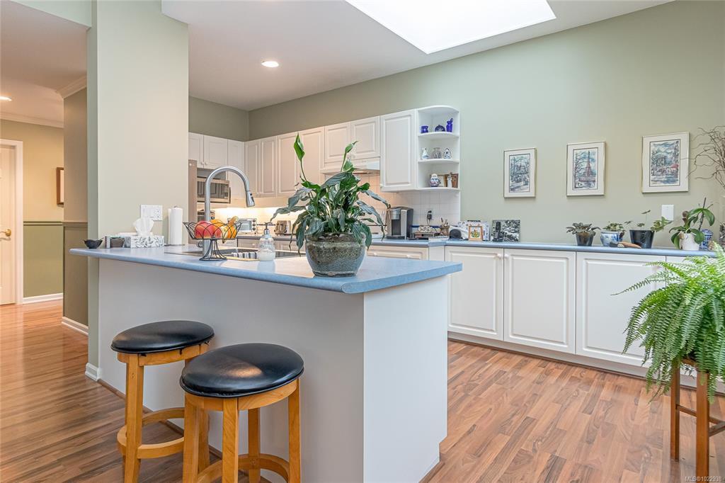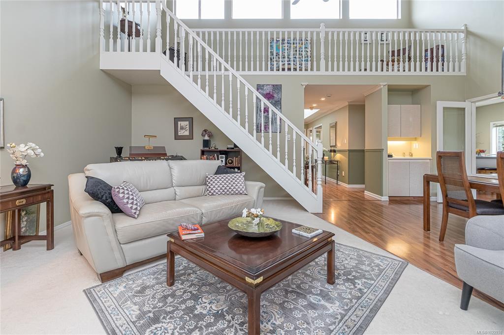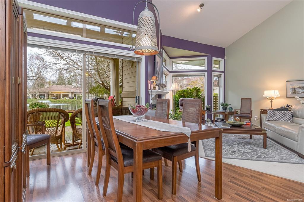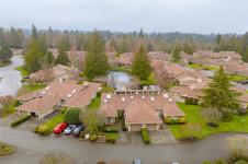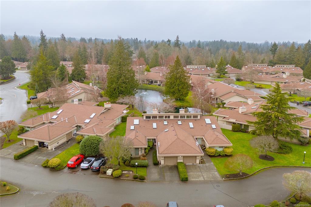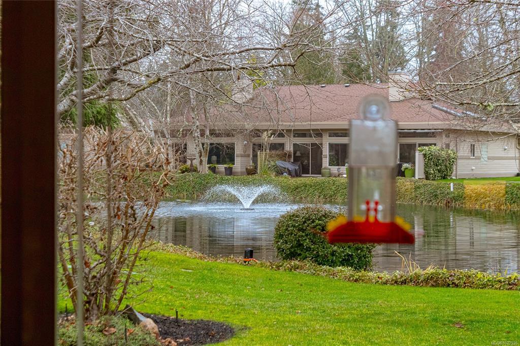 ST. ANDREW’S LANE – Serene Patio Home on the Pond. This exceptional SW-facing location offers outstanding privacy & tranquil water views. Relax on the oversized patio & immerse yourself in nature. The bright 1,753 sq ft open floor plan is filled with natural light, featuring floor-to-ceiling windows showcasing the pond, thoughtfully placed skylights, & a cozy gas fireplace. The spacious primary bedroom offers a walk-in closet, newly renovated 5-piece ensuite, & a private walk-out patio unique to this home—perfect for enjoying soft east-facing morning light. A second bedroom with twin Murphy beds is ideal for guests. The flexible loft overlooks the living area, maximizing vaulted ceilings, while the family room connects seamlessly to the kitchen. Additional highlights include in-floor radiant heating for dust-free comfort, separate laundry & storage, a garage, & parking for two more vehicles. Ideally located near the marina, golf course, and Qualicum Beach’s renowned beaches and trails.